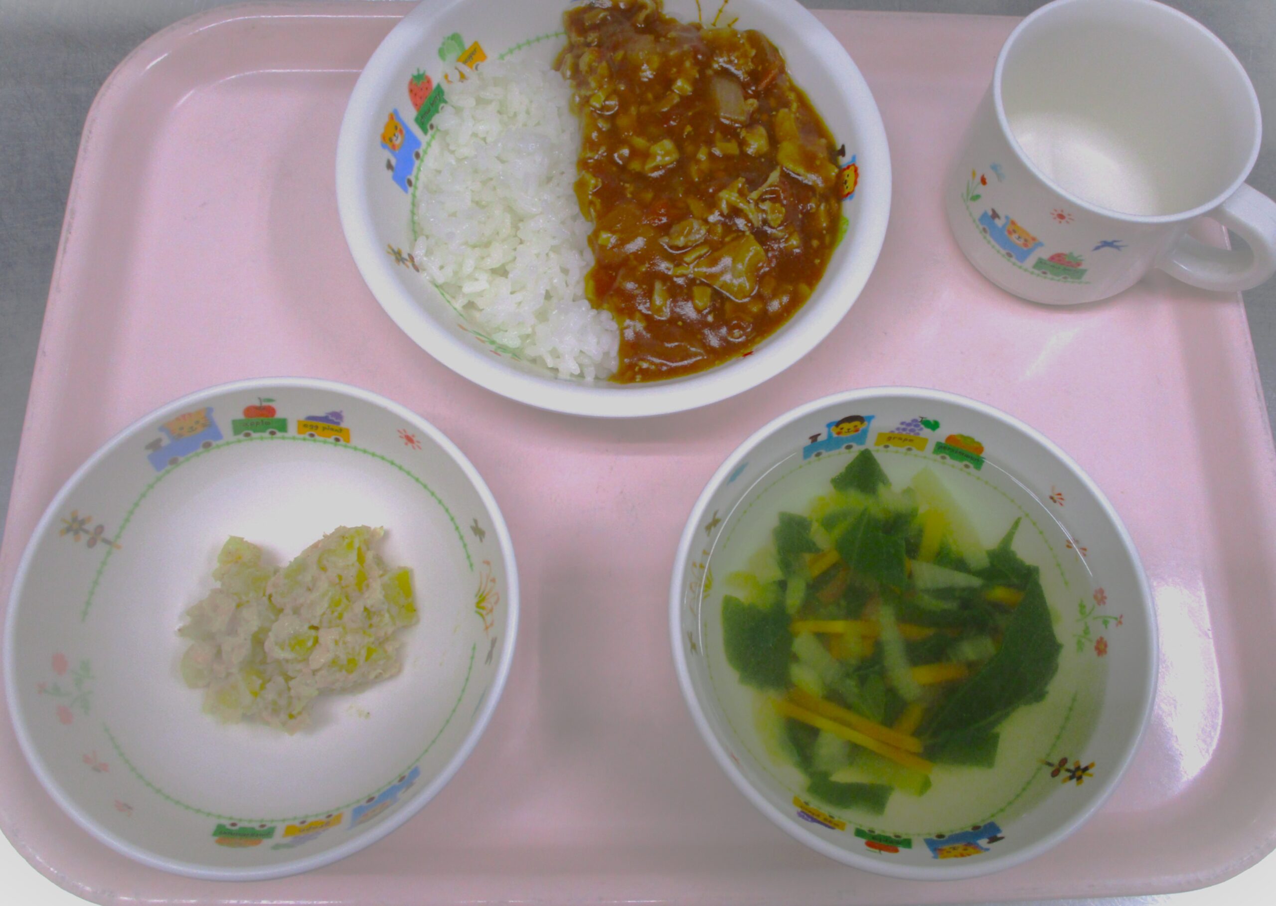 2025.07.03 🍽️ハヤシライス🍛 大宮たんぽぽ保育園🌈 今日の給食🍴 ハヤシライス🍛 チンゲン菜のスープ🍲 まめ🥗サラダ いただきます。