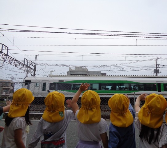 2025.05.27 🚃電車に大興奮🚃 大宮たんぽぽ保育園 今日なつめさんと一緒にお散歩に行ってきました🚃土呂駅まで電車を見に行くとちょうど、回送列車や特急列車まで見ることができました👀✨列車に手を振るとなんと汽笛を鳴らしてもらい「汽笛鳴らしてもらった!」と大興奮の子どもたちでした🥰🚃