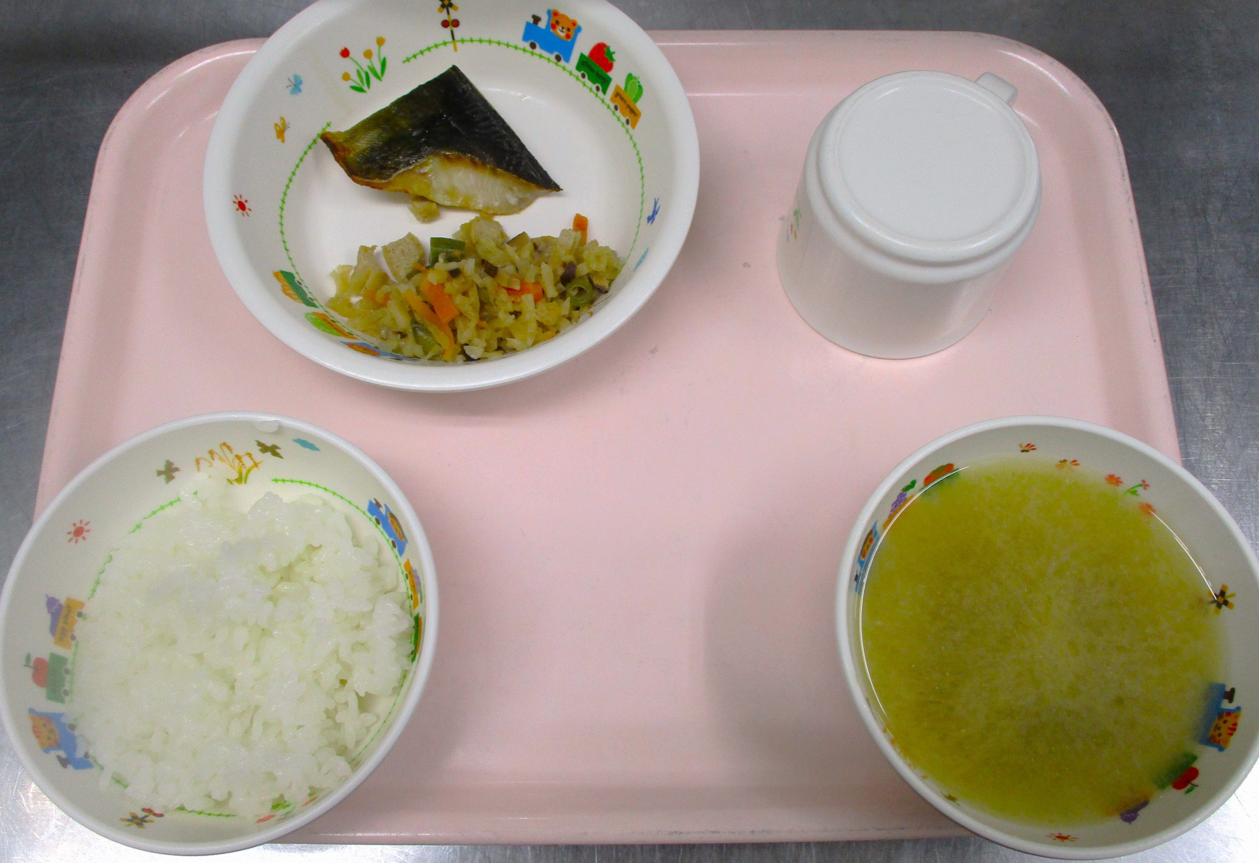 2025.04.21 ほっけのみりん焼き 大宮たんぽぽ保育園 今日の給食 🍚ごはん なめこのみそ汁 ほっけのみりん焼き 切干大根煮 いただきます -
