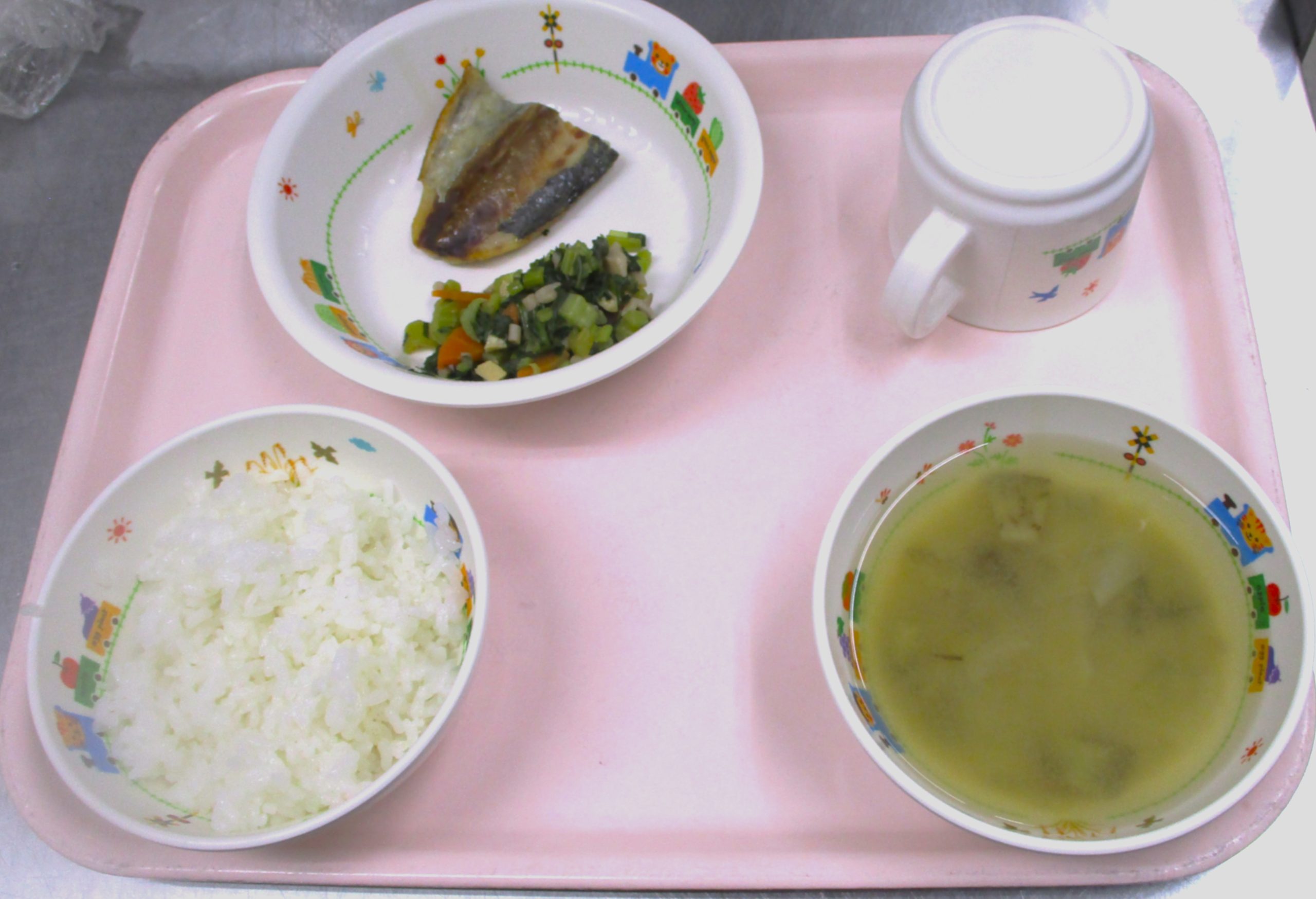 2025.04.07 🐟あじの生姜焼き🍽️ 🏫大宮たんぽぽ保育園🌈 今日の給食🍽️ 🍚ごはん🥢 🍆ナスのみそ汁🍲 🐟あじの生姜焼き 🥕🥬小松菜の煮浸し -