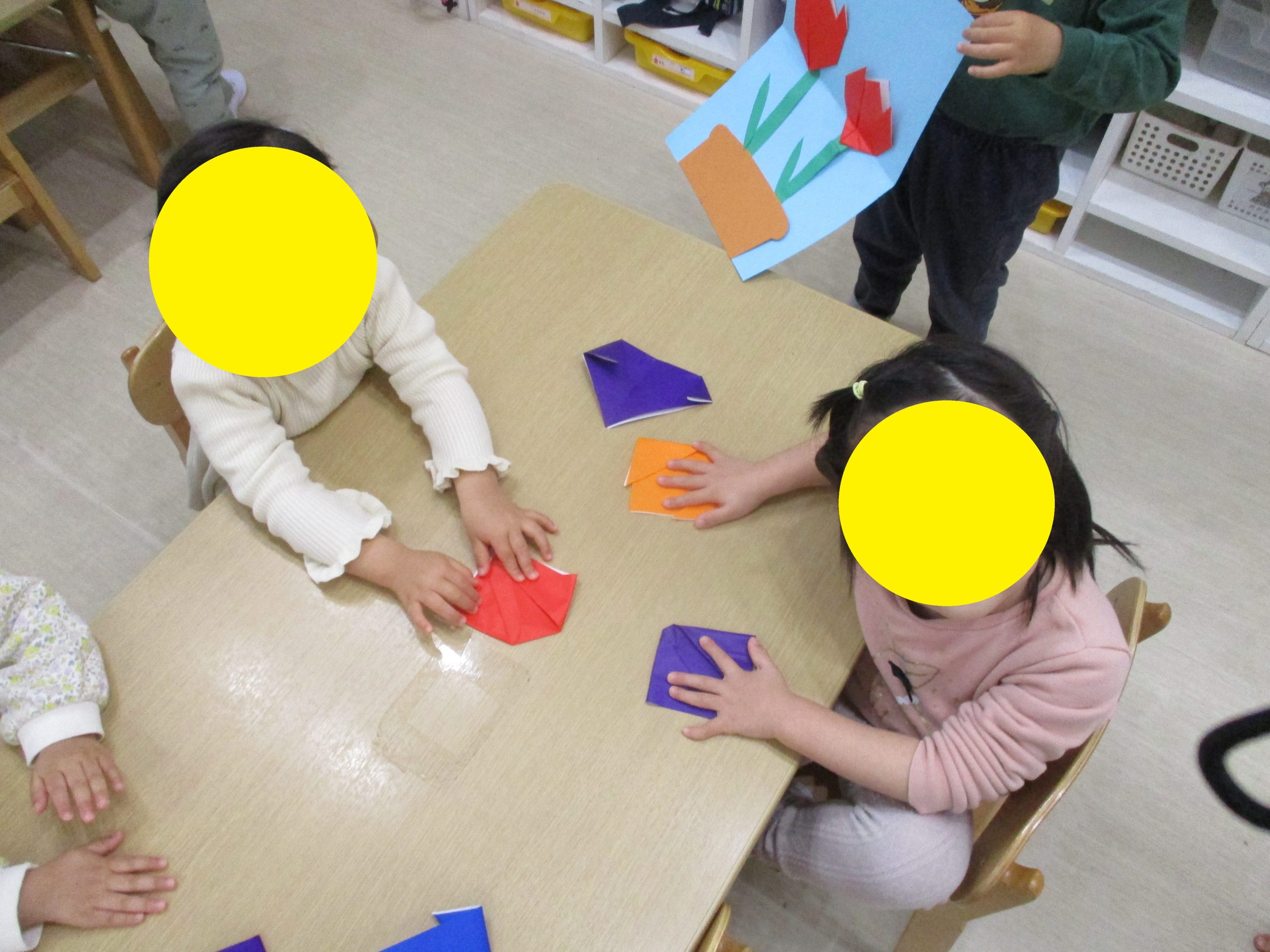 2025.04.03 4月のお製作をしました🌷 好きな色の折り紙を選びみんなでチューリップを折りました🌷 先生のお話しを聞いてみんな上手に折れていましたよ🥰 -