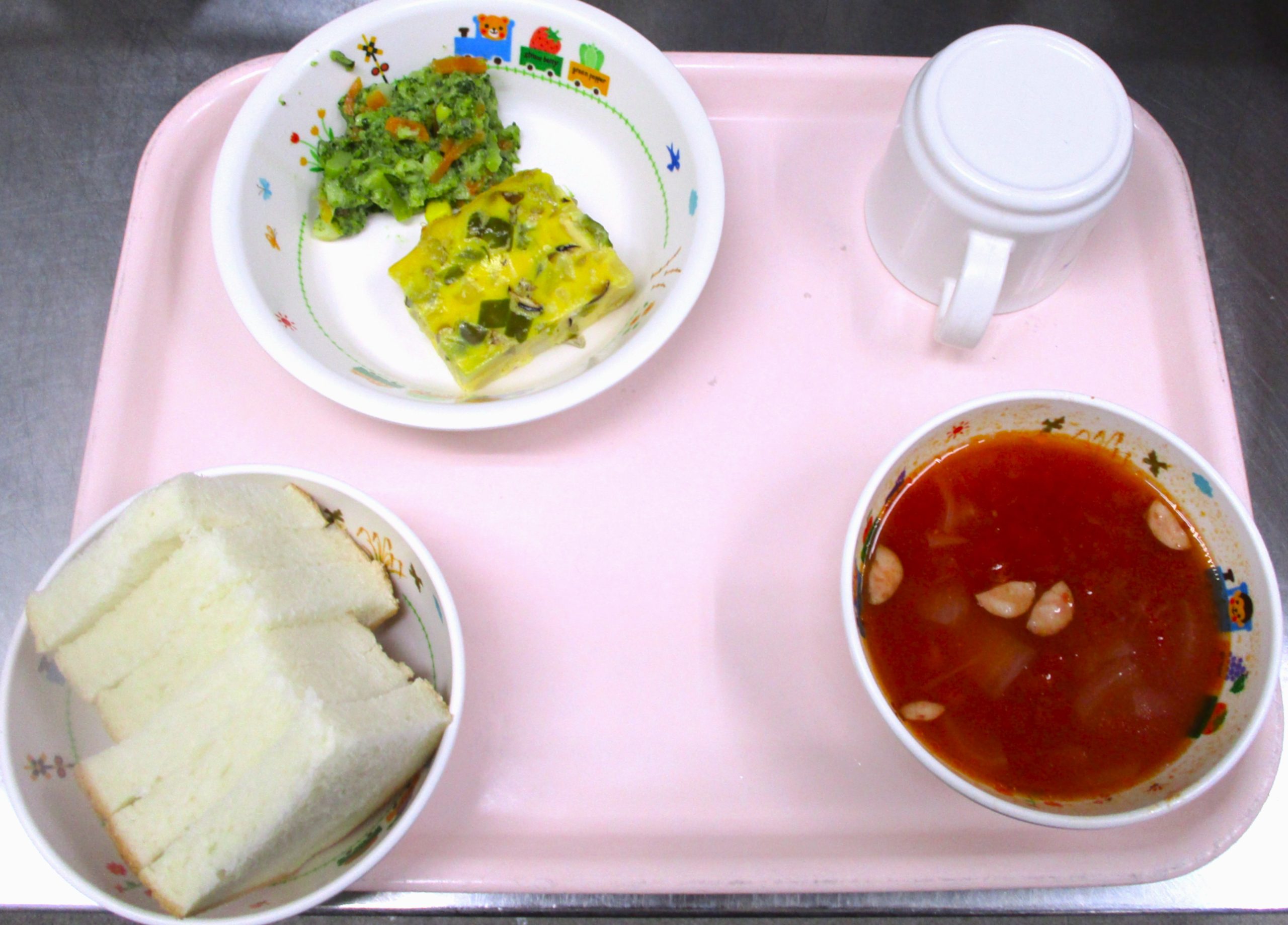 2025.04.01 🍽️ミネストローネ🍲 さいたま市🏫 大宮たんぽぽ保育園🌈 今日の給食 🍞パン🍞 スパニッシュオムレツ🧅🥕🥚 ミネストローネ🍲 🥦ブロッコリーサラダ🥗 いただきます。 -