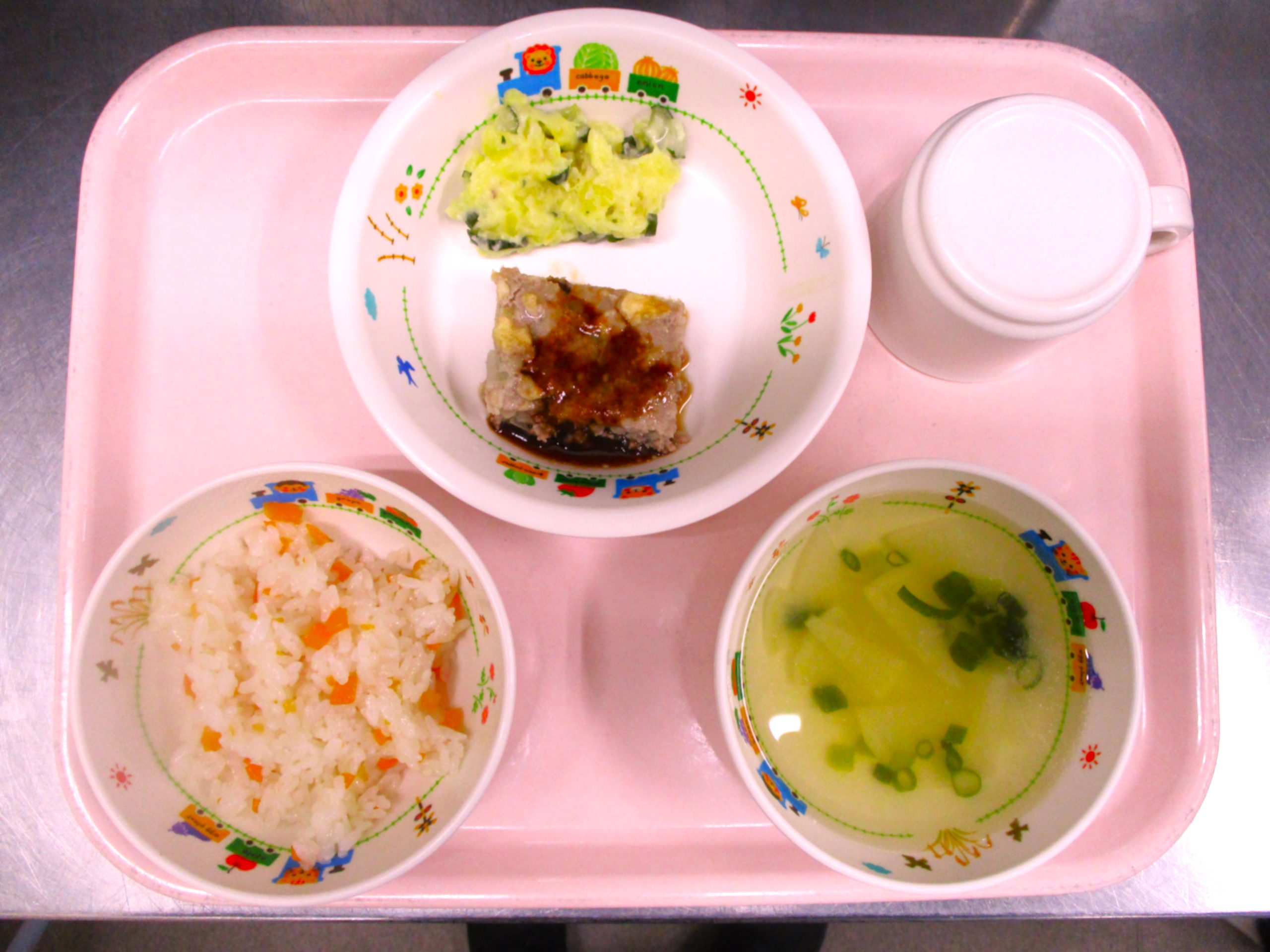 2025.03.17 🎂🥙🍕ハンバーグ🍽️ 大宮たんぽぽ保育園🌈 今日の給食🍴 🥕キャロットライス 🍜大根のスープ 🍴ハンバーグ 🍠さつまいものサラダ🥗 -