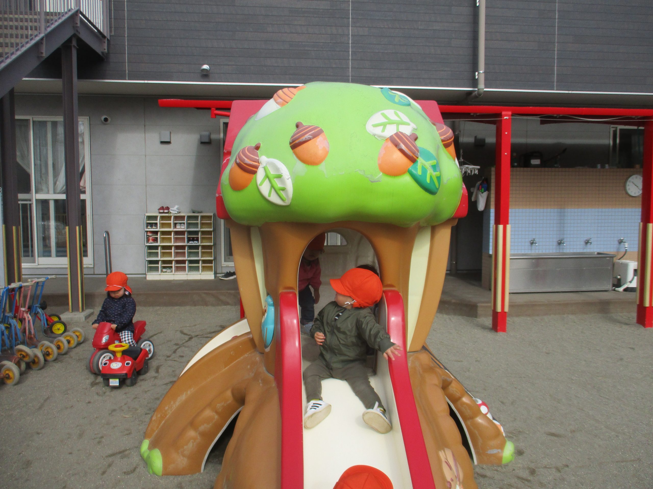 2025.01.27 1歳児 あんず組 園庭遊び 寒さに負けず1歳児あんず組は元気に園庭で遊びました♪ すべり台が大好きできちんと並んで順番を待つことができるようになったあんず組です💕 -