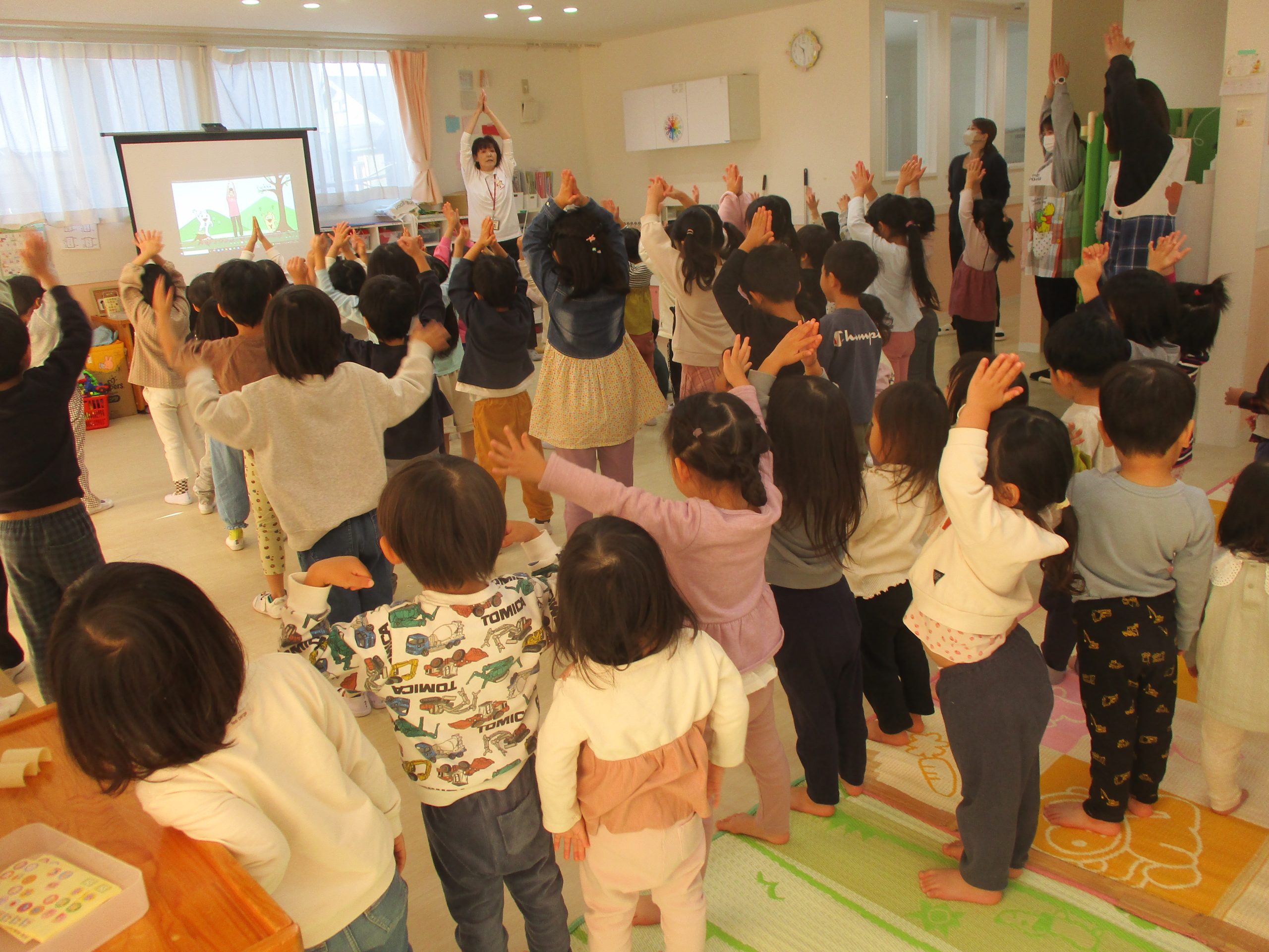 2024.12.05 パイナポー体操🍍 大宮たんぽぽ保育園 今日の課外の時間は体操教室!体操が始まる前には、準備体操としてみんなで「パイナポー体操」を踊っています! 2番の振り付けにある腕を足に引き付けるポーズで「ウー!!」という掛け声をみんなでいうのが子どもたちのお気に入りです✨ パイナポー体操は、先日行われた運動会