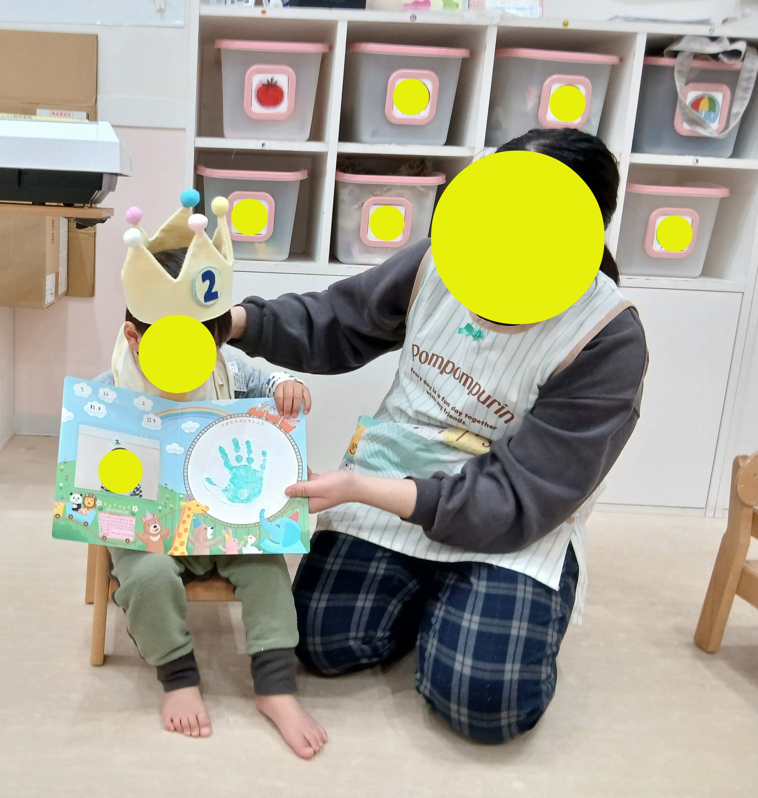 2026.03.16 ✨1歳児 3月生まれのお誕生日会✨ 今日は3月生まれのお友だちのお誕生日会を行いました🎂 お誕生日のお友だちに皆の前に座って王冠を被ることを伝えると、「うん!」と頷いて嬉しそうに座って いましたよ🤭 先生たちからのお誕生日カードを貰うと、興味津々にカードを眺めたり、事前に押した手形に自分の手 を重ねたりと嬉し -