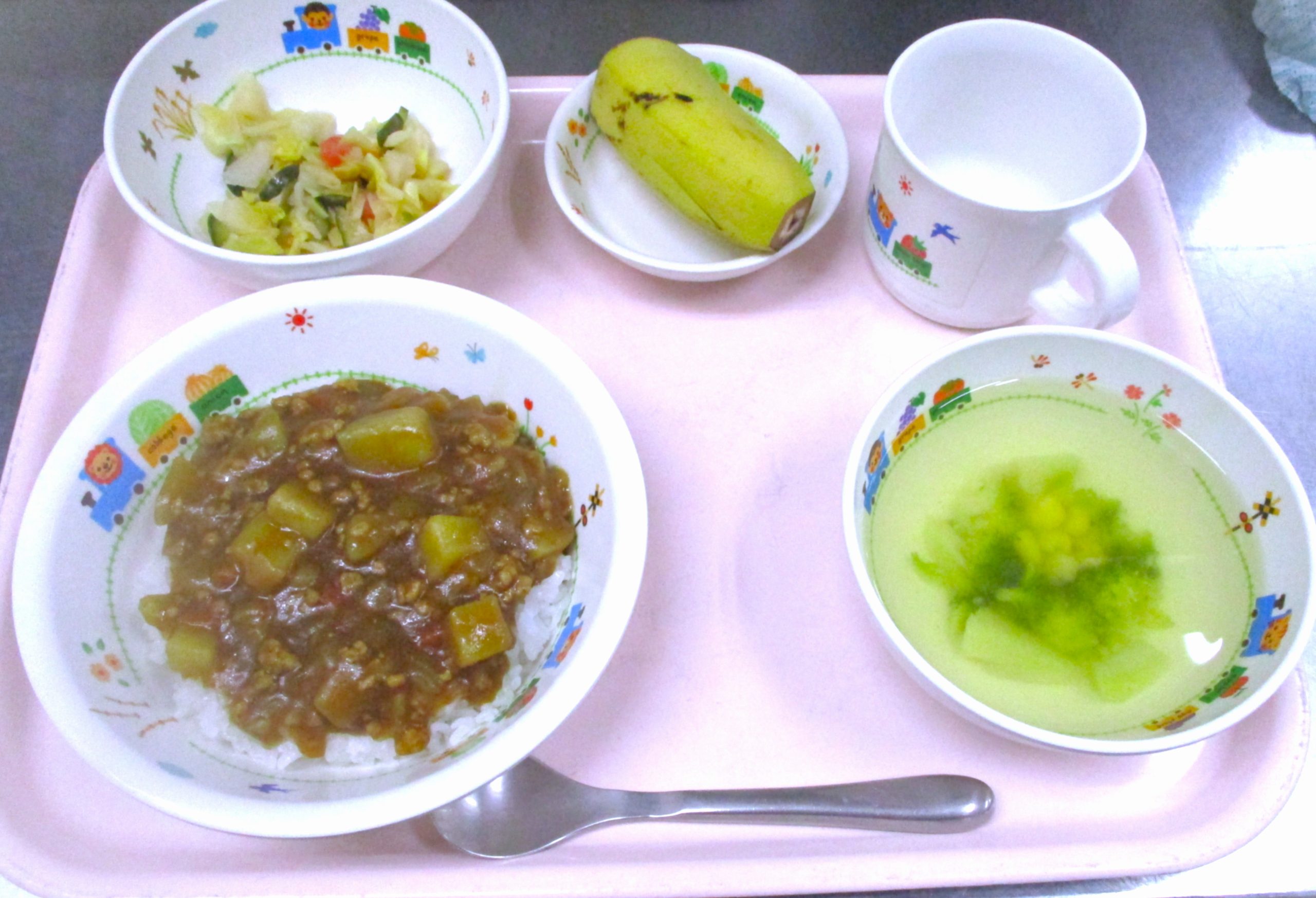 2026.03.11 🥕🥔キーマ🍛カレー🧅 🥦ブロッコリーのスープ🍲 カラフル🥗サラダ 🍌バナナ🍌 いただきます。