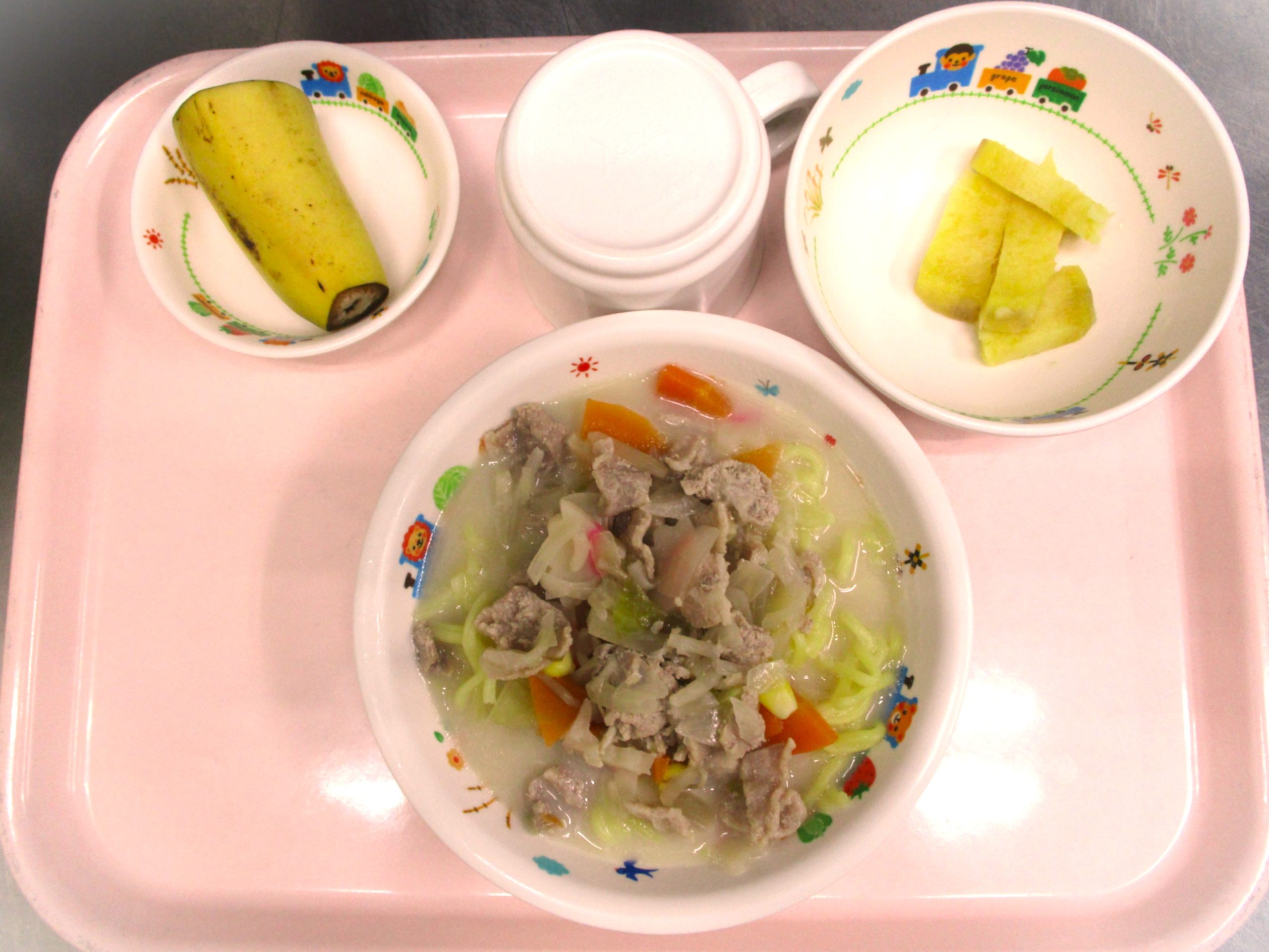 2024.10.29 野菜ちゃんぽん 大宮たんぽぽ保育園🌈 今日の給食 🍜野菜ちゃんぽん さつまいもスティック 🍌バナナ いただきます。 -