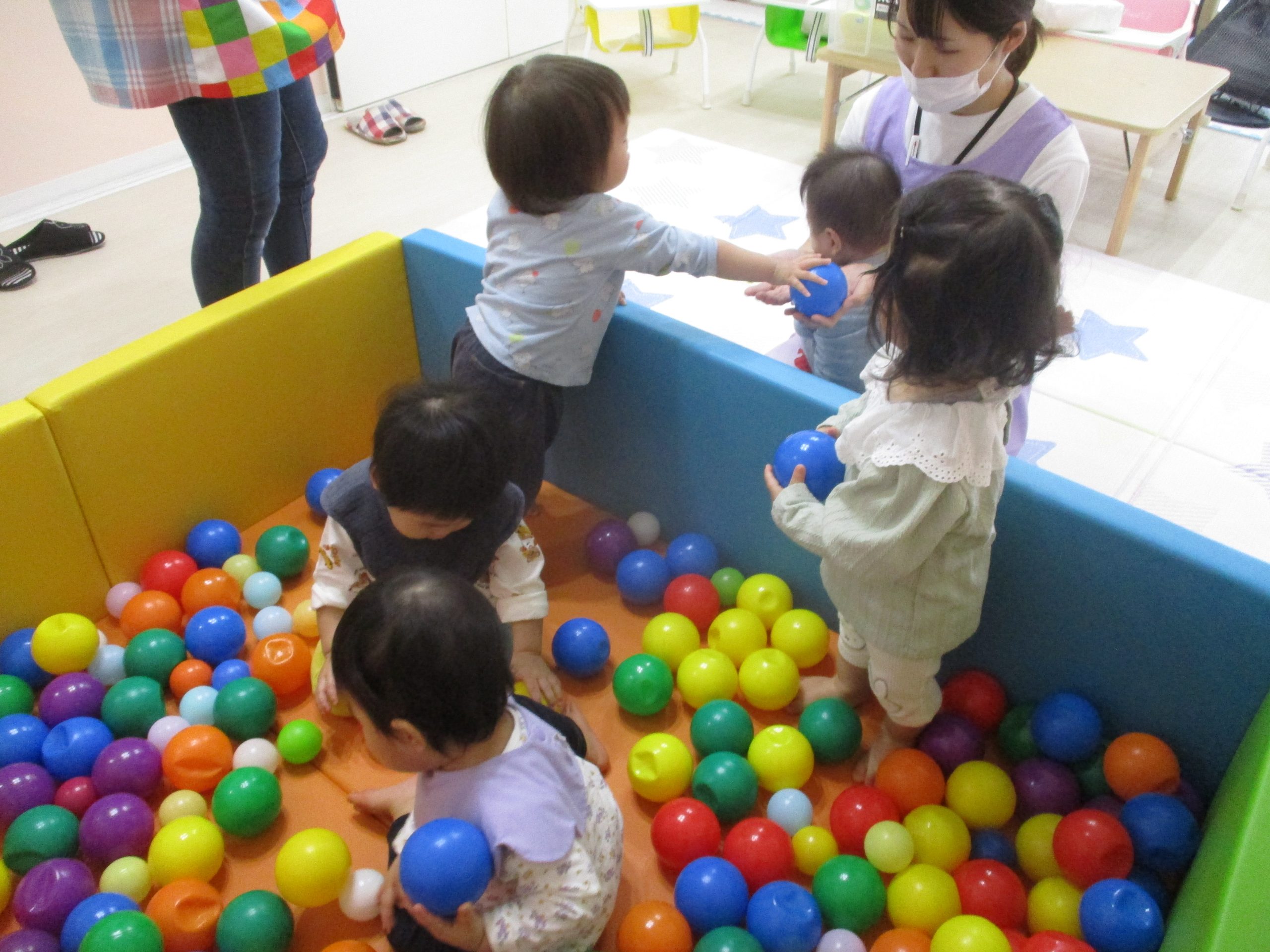 2024.10.28 ボールプール最高! 大宮たんぽぽ保育園 雨だったので室内で過ごしました。囲いの中にたくさんボールを入れて、その中でボールを 投げたり、ボールに潜って遊びました。 -