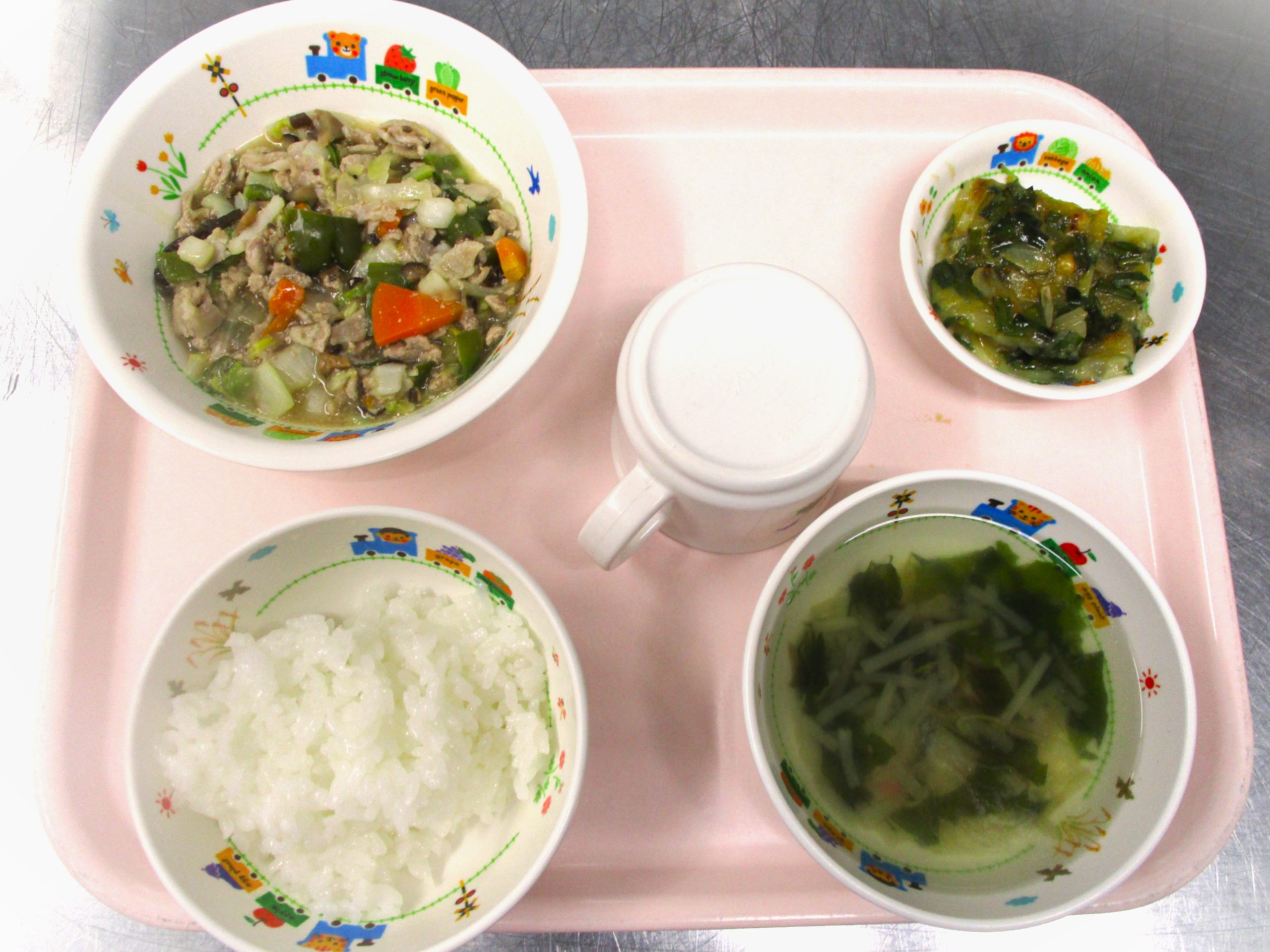 2024.10.18 🍲八宝菜 大宮たんぽぽ保育園🌈 今日の給食🍽️ 🍚ごはん 🍲中華スープ 🍲八宝菜 🧅🥬🥕チジミ いただきます。 -