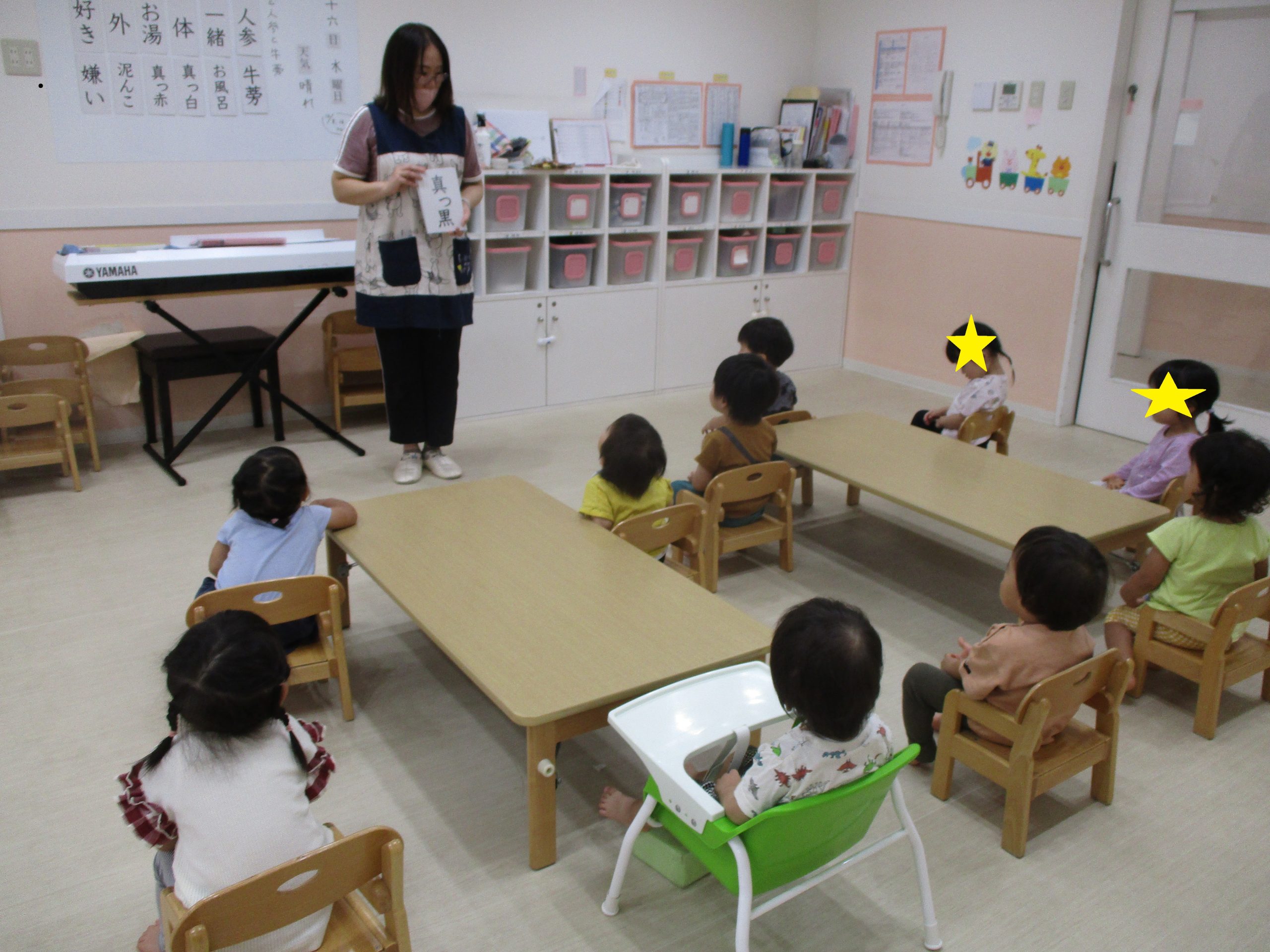 2024.10.16 朝の読み聞かせ 1歳児あんず組は朝の会の時に毎日絵本の読み聞かせをします♪ 今日の絵本は「だるまさんが」みんなが大好きなシリーズです📖 -
