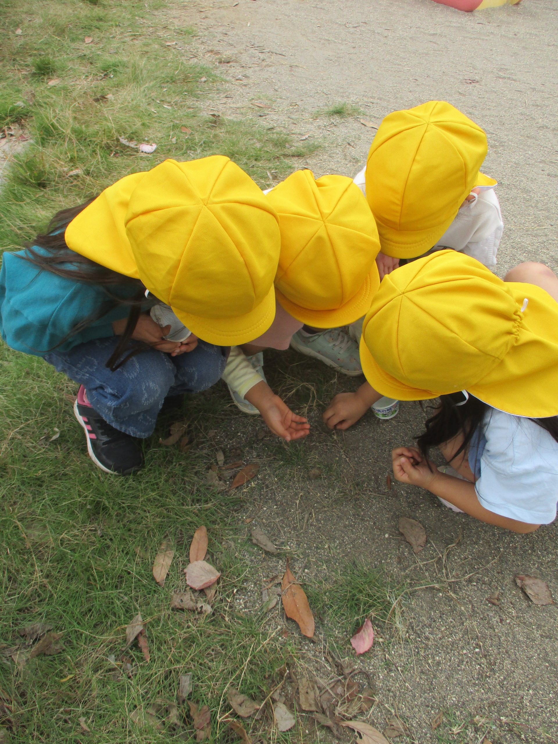 2024.10.22 園庭には…✨ 大宮たんぽぽ保育園 たんぽぽ保育園の園庭には、どんぐりやオリーブ、ハナミズキの実が落ちています! 子どもたちは、園庭に行くと「どんぐり見つけた!」「これ、すごく大きいよ!」と色々な実を見つけて嬉しそうです😊💕 そして、いつも通り実やダンゴムシを探していると…「なんか大きくてウニョ -
