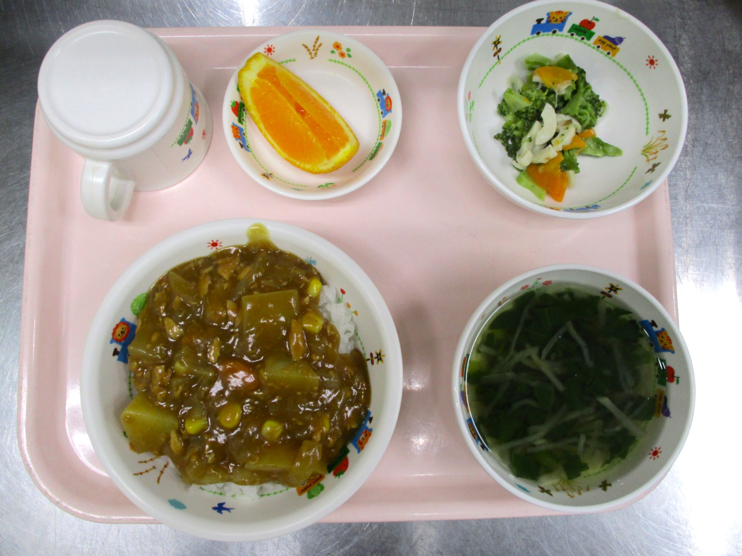 2024.08.15 ツナコーンカレー🍛 大宮たんぽぽ保育園🌈 今日の給食 🍛ツナコーンカレー 🥬小松菜のスープ 🥗ブロッコリーと竹輪のサラダ 🍊オレンジ いただきます🍽️ -