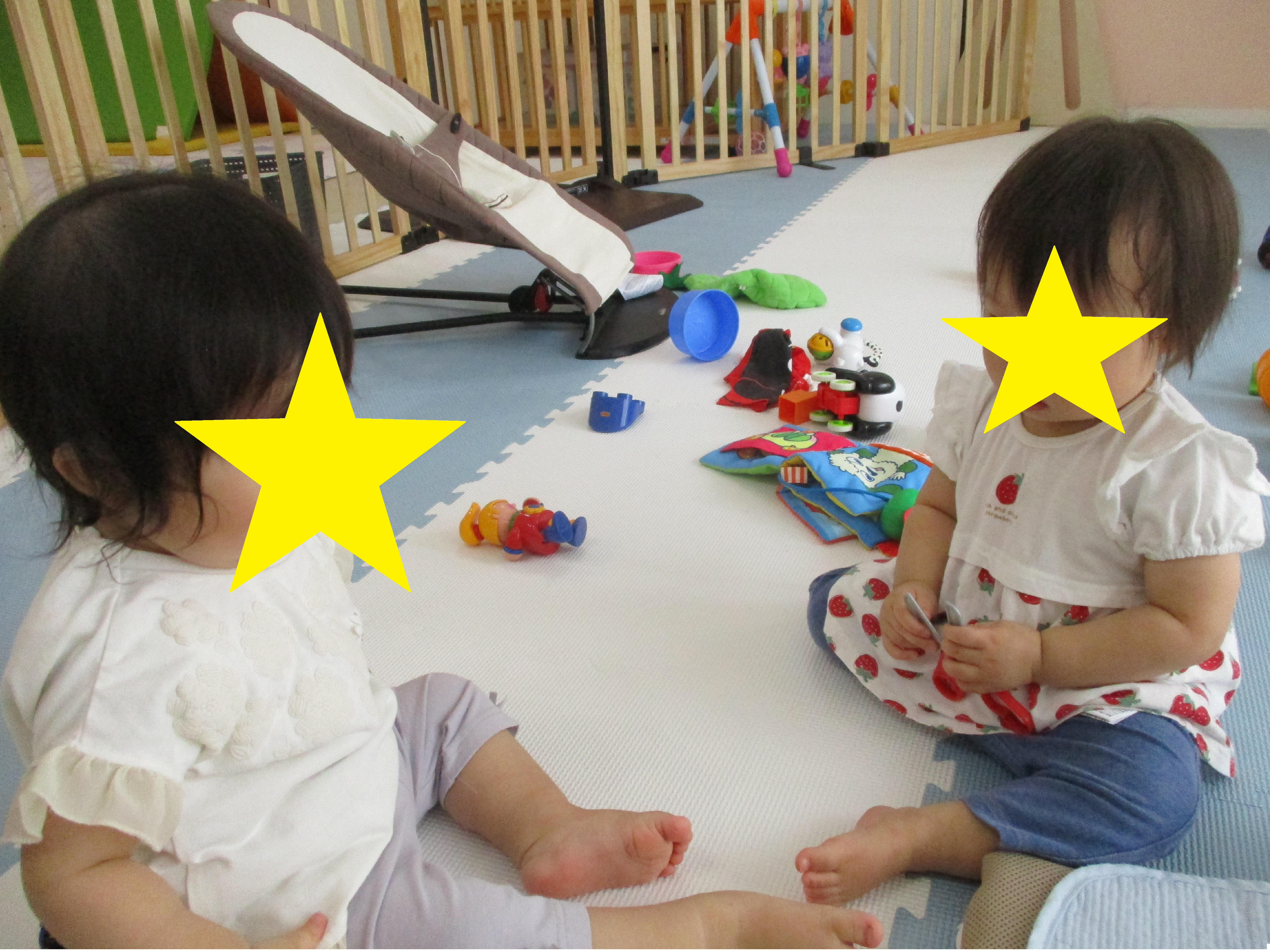 2024.08.05 お友だちと仲良し🥰 くるみ組にお友だちが増えてきました!おもちゃに興味津々な子どもたち。 お友だちとの関わりも見られるようになっています💕 -