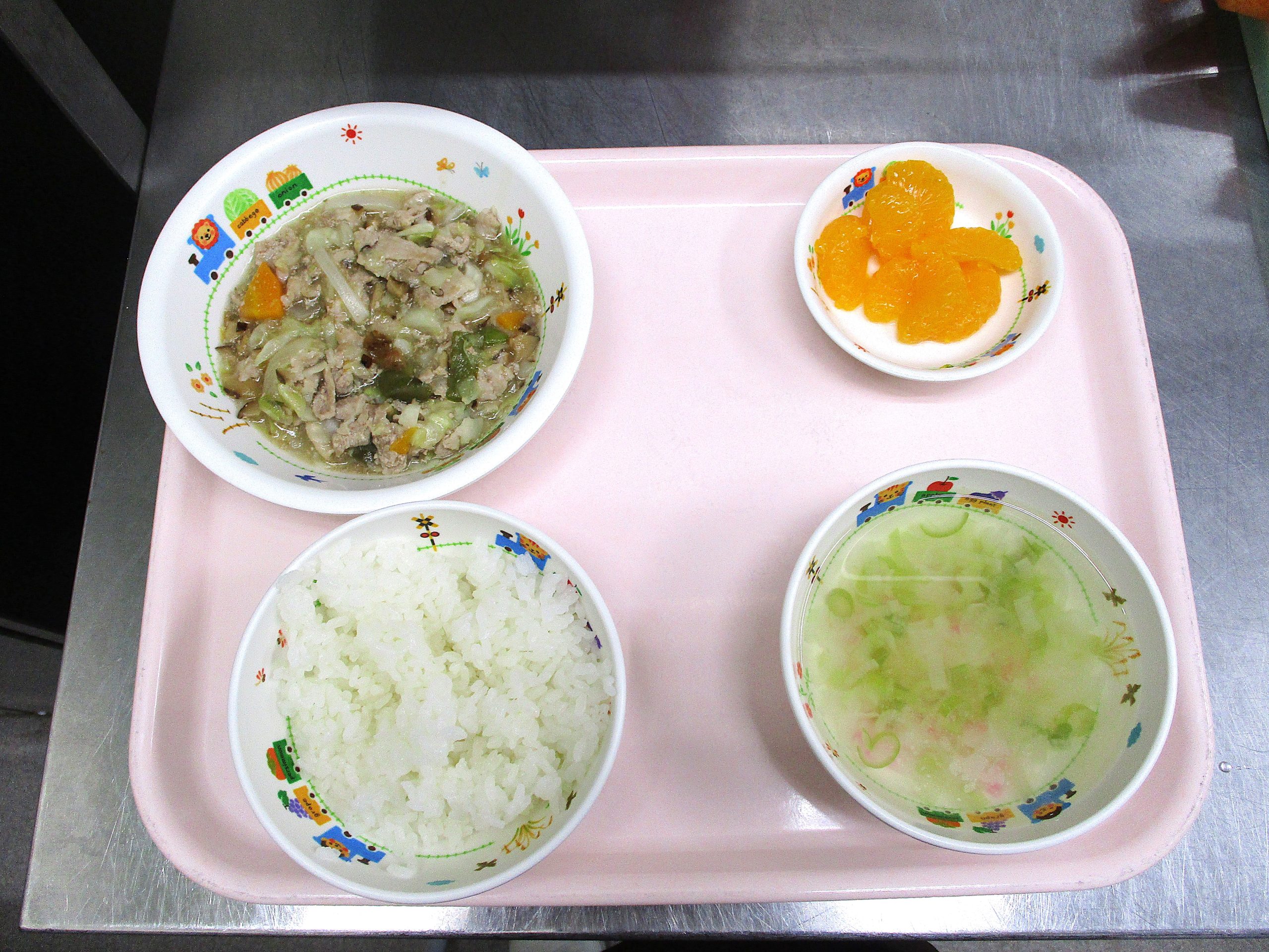2024.07.11 八宝菜🥕 大宮たんぽぽ保育園🌈 今日の給食 🍚ごはん🍜中華スープ🥕八宝菜🍊みかん缶 いただきます。 -
