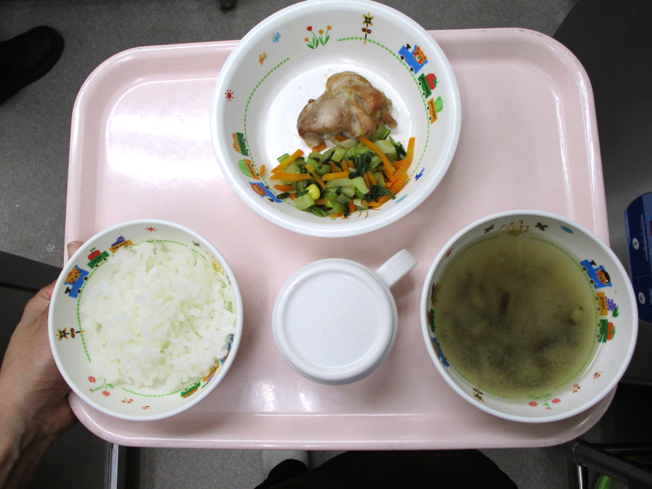 2024.07.17 スタミナチキン🍗 大宮たんぽぽ保育園🌈 今日の給食 🍚ごはん🍜みそ汁🍗スタミナチキン🥕🥬青菜のお浸し いただきます -