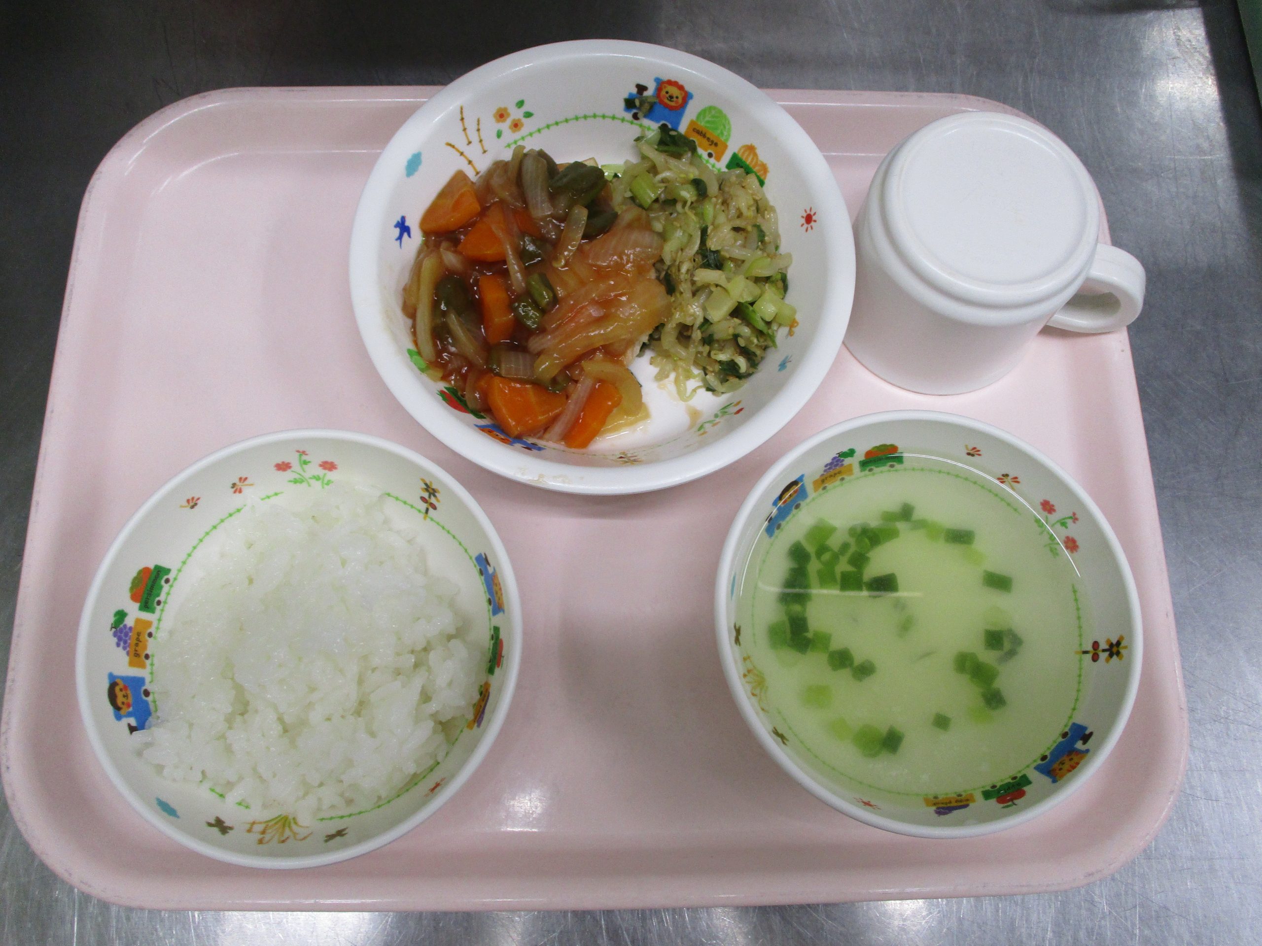 2024.07.02 春雨スープ🍲 大宮たんぽぽ保育園🌈 今日の給食 🍚ごはん🍜春雨スープ🍗酢鶏🍽️もやしのナムル いただきます。 -