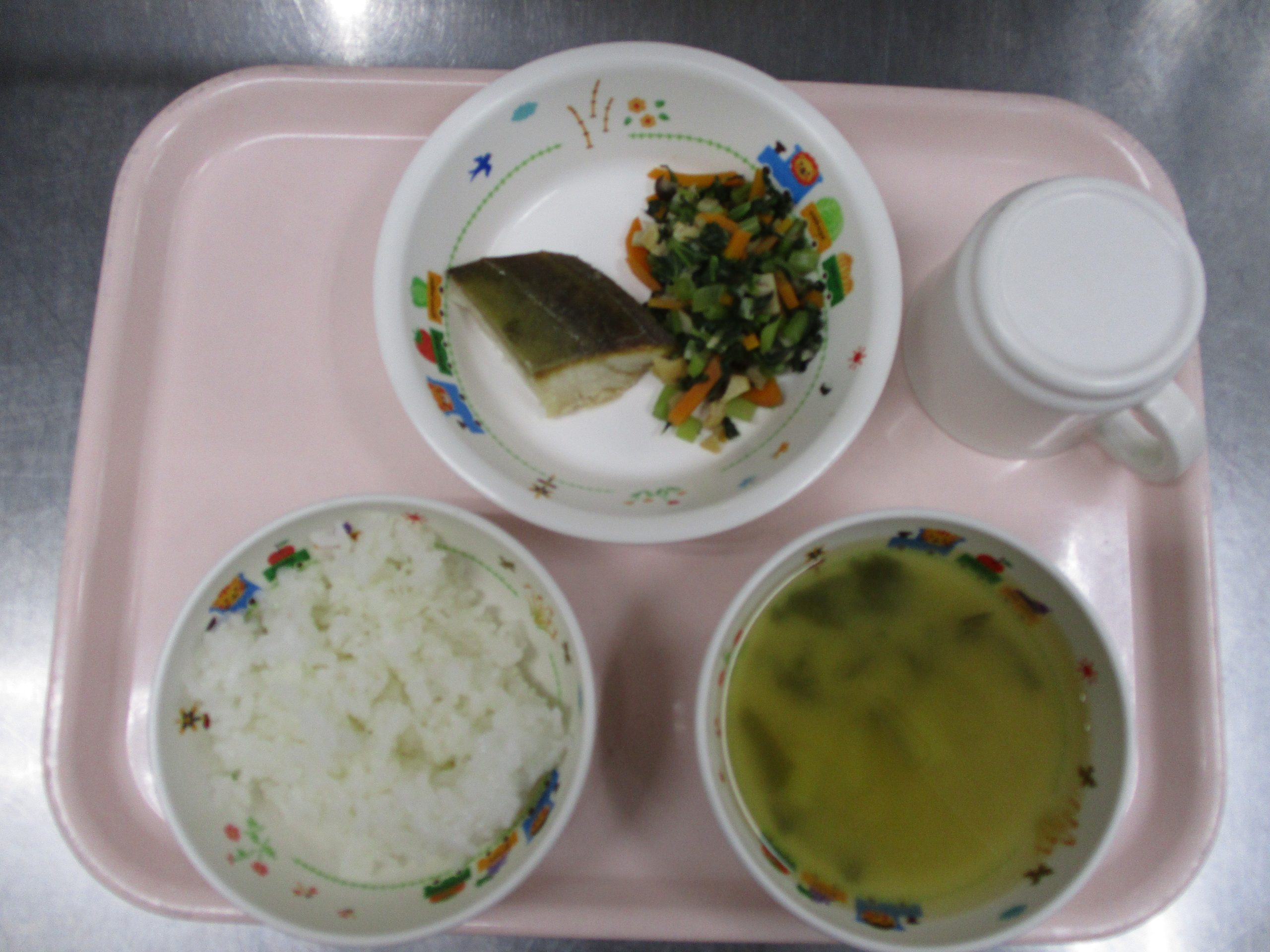 2024.07.01 あじの塩焼き🐟 大宮たんぽぽ保育園🌈 今日の給食🍽️ 🍚ごはん🍜具だくさん汁🐟あじの塩焼き🥬ほうれん草のごま和え いただきます -