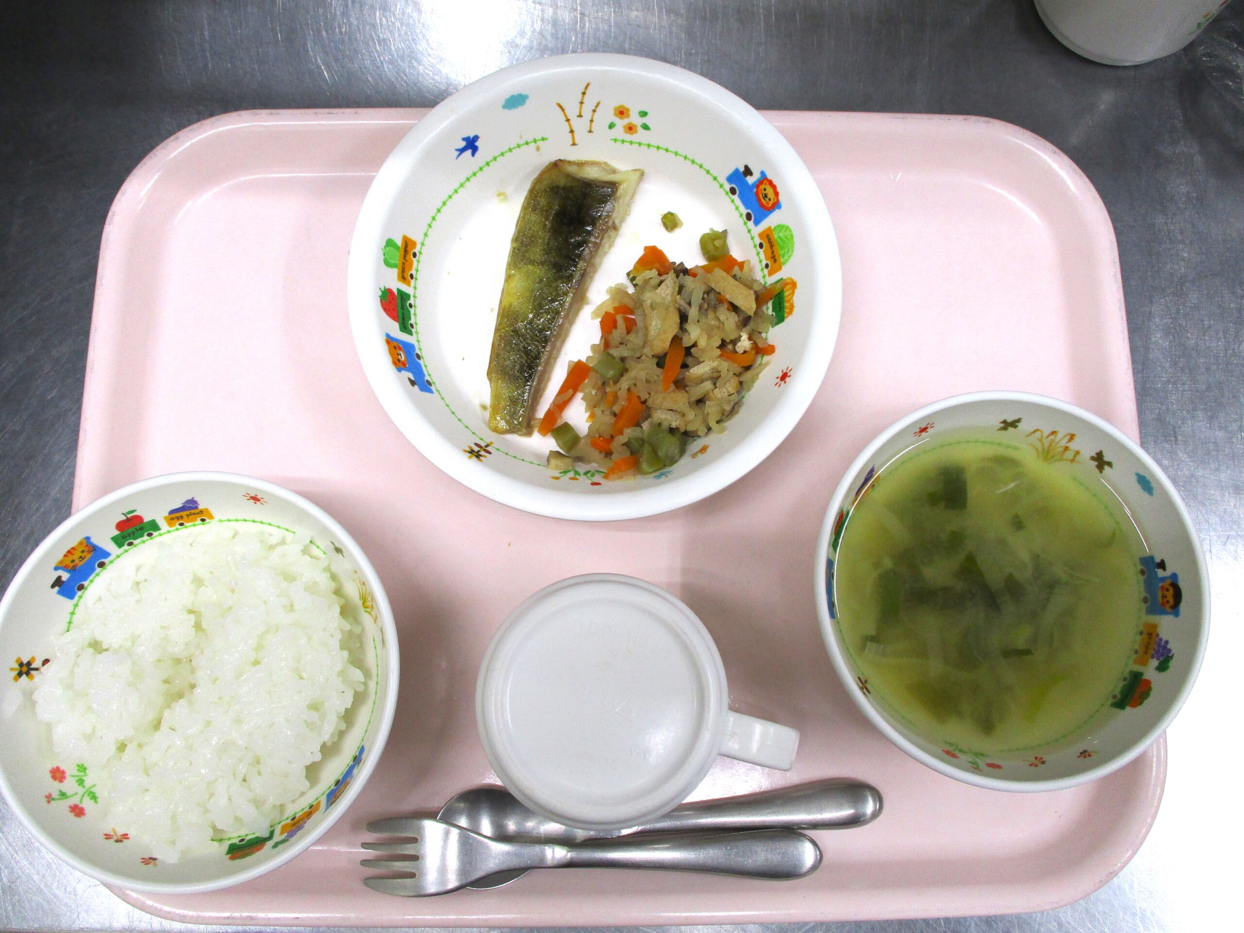 2024.04.03 大宮たんぽぽ保育園🌈 ホッケのみりん焼き🐟 さいたま市北区 大宮たんぽぽ保育園🌈 今日の給食 🍚ごはん🍲みそ汁🐟ホッケのみりん焼き🍽️切干大根煮 いただきます。