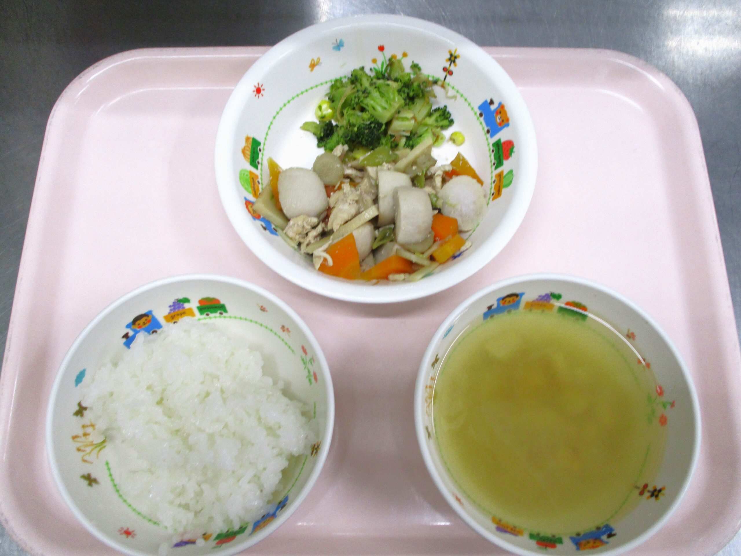 2024.04.08 大宮たんぽぽ保育園🌈 筑前煮🫛 さいたま市北区 認可保育園 大宮たんぽぽ保育園🌈 今日の給食🍽️ 🍚ごはん🍲みそ汁🫛筑前煮🥦ブロッコリーのおかか和え いただきます。 -
