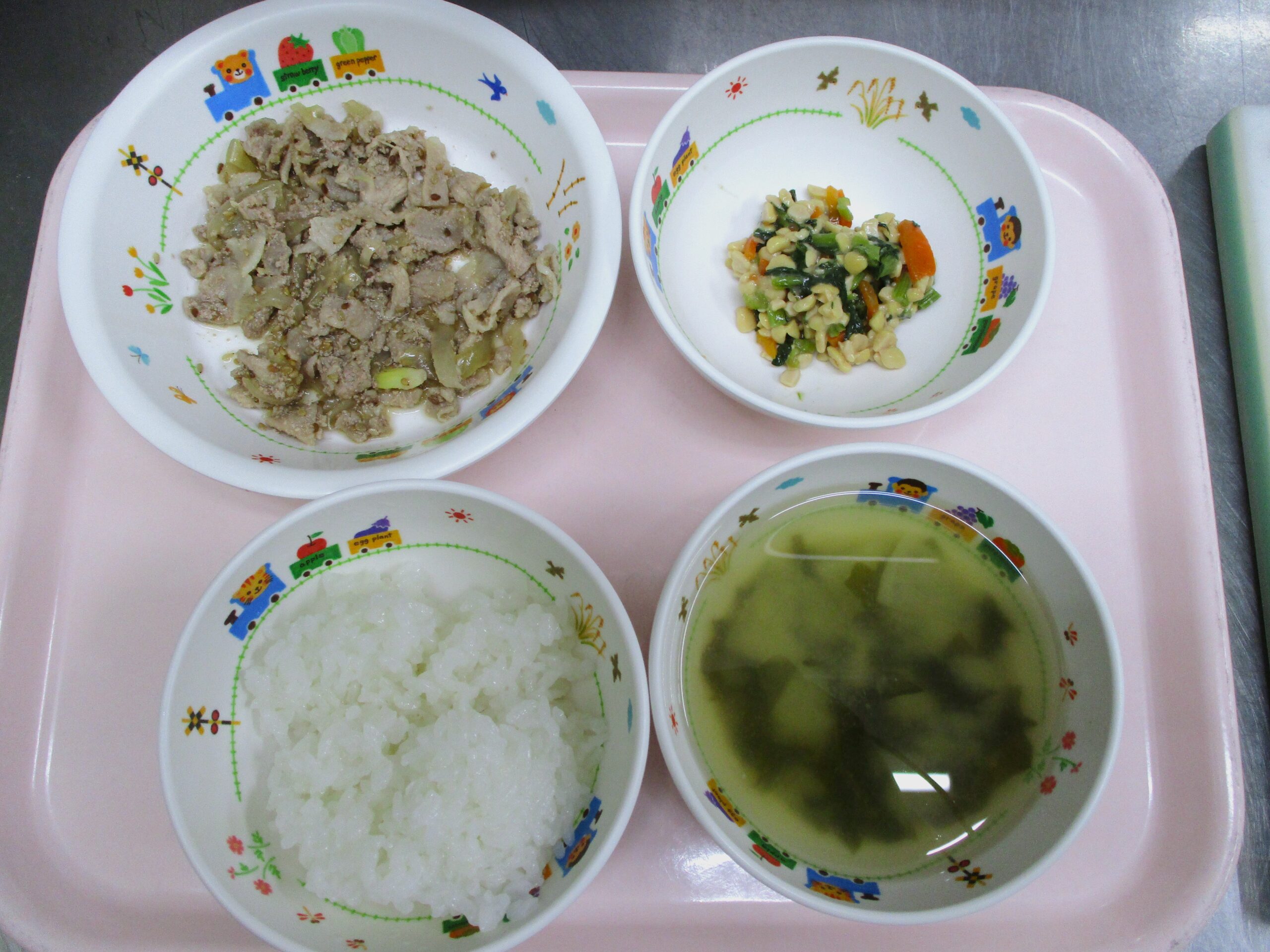 2024.04.10 大宮たんぽぽ保育園🌈 🍽️豚肉のごま照り焼き さいたま市北区 大宮たんぽぽ保育園🌈 今日の給食🍽️ 🍚ごはん🍲みそ汁🍗豚肉のごま照り焼き🫛🥬青菜の納豆和え いただきます。🧑🍳 -