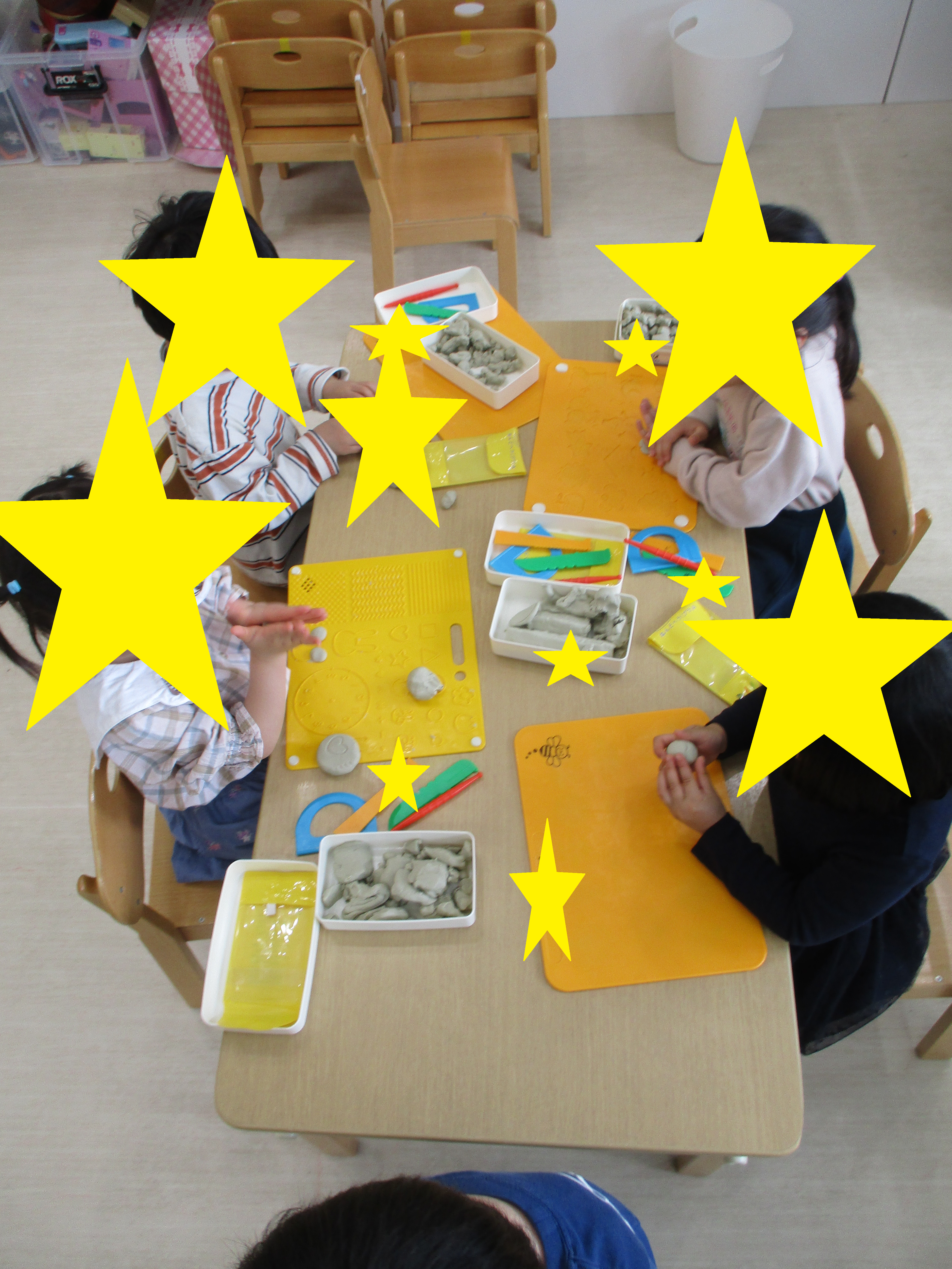 2024.04.08 粘土遊び✨ 最近、なつめ組さんでは粘土遊びが流行っています! 「ケーキ作った!」「ペロペロキャンディーになった!」と毎日色々を作っていますよ💕 明日はどんな物が出来上がるのかたのしみです☺️ -