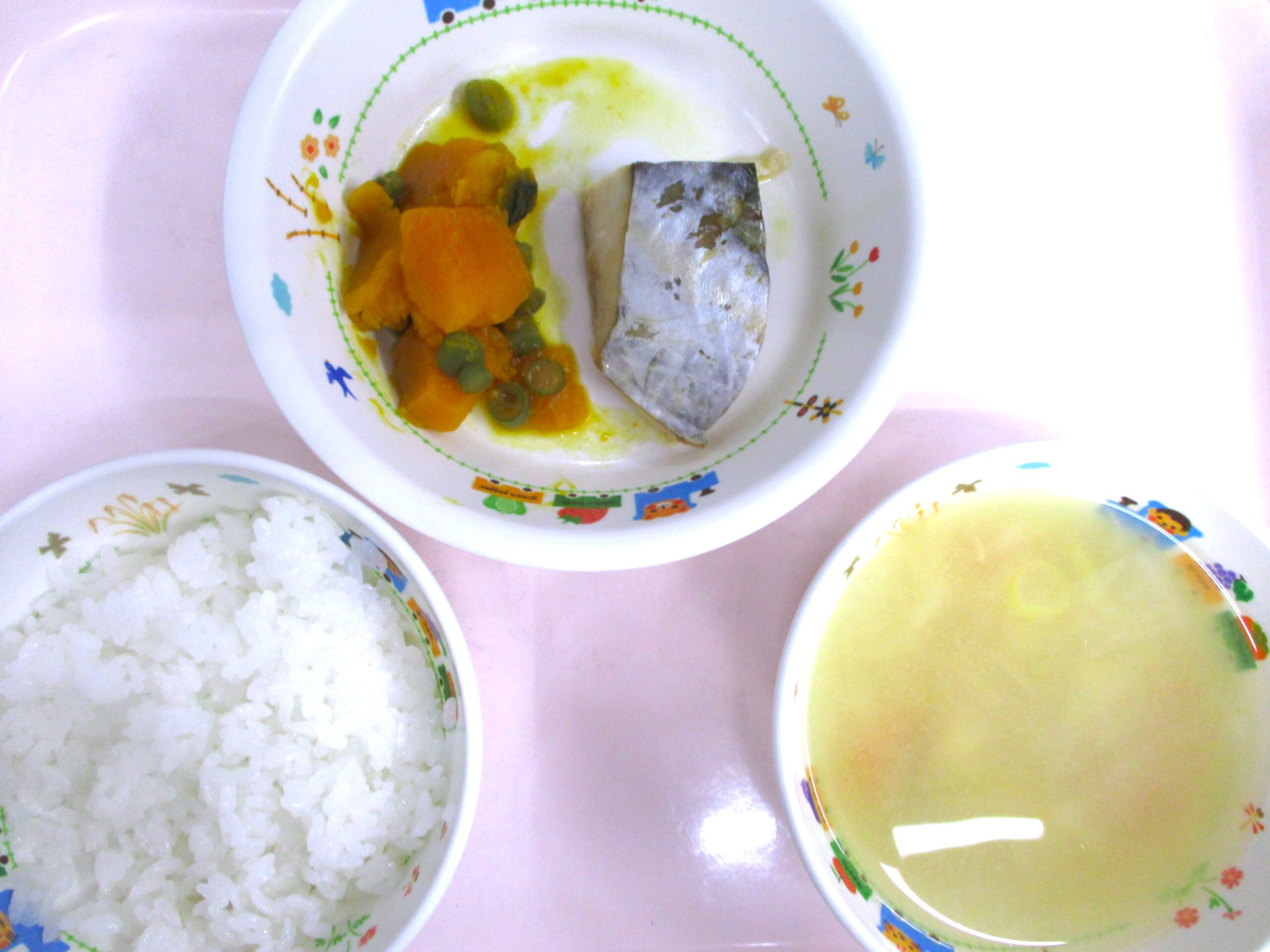 2026.01.19 🐟さわらの生姜焼き🍽️ 🌈大宮たんぽぽ保育園🏫 今日の給食🍽️ 🍚ごはん🍚 🥕具だくさん汁🍜🧅🧅 🐟さわらの生姜焼き かぼちゃの煮物 いただきます。 -
