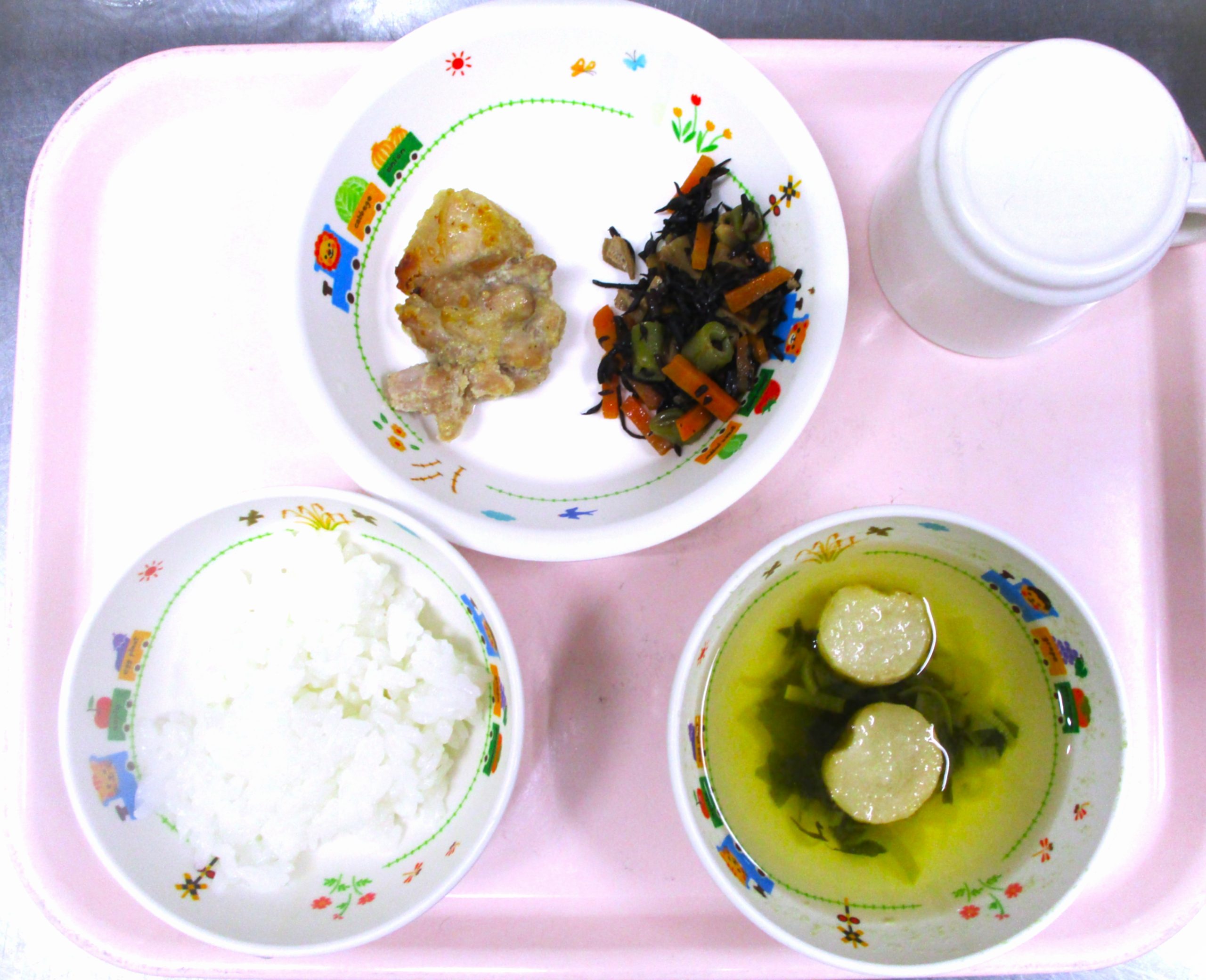 2026.02.04 🍗鶏肉のごまみそ焼き🍴 大宮たんぽぽ保育園🌈 今日の給食🍽️ 🍚ごはん🍚 すまし汁 鶏肉のごまみそ焼き ひじきの煮物 いただきます。 -