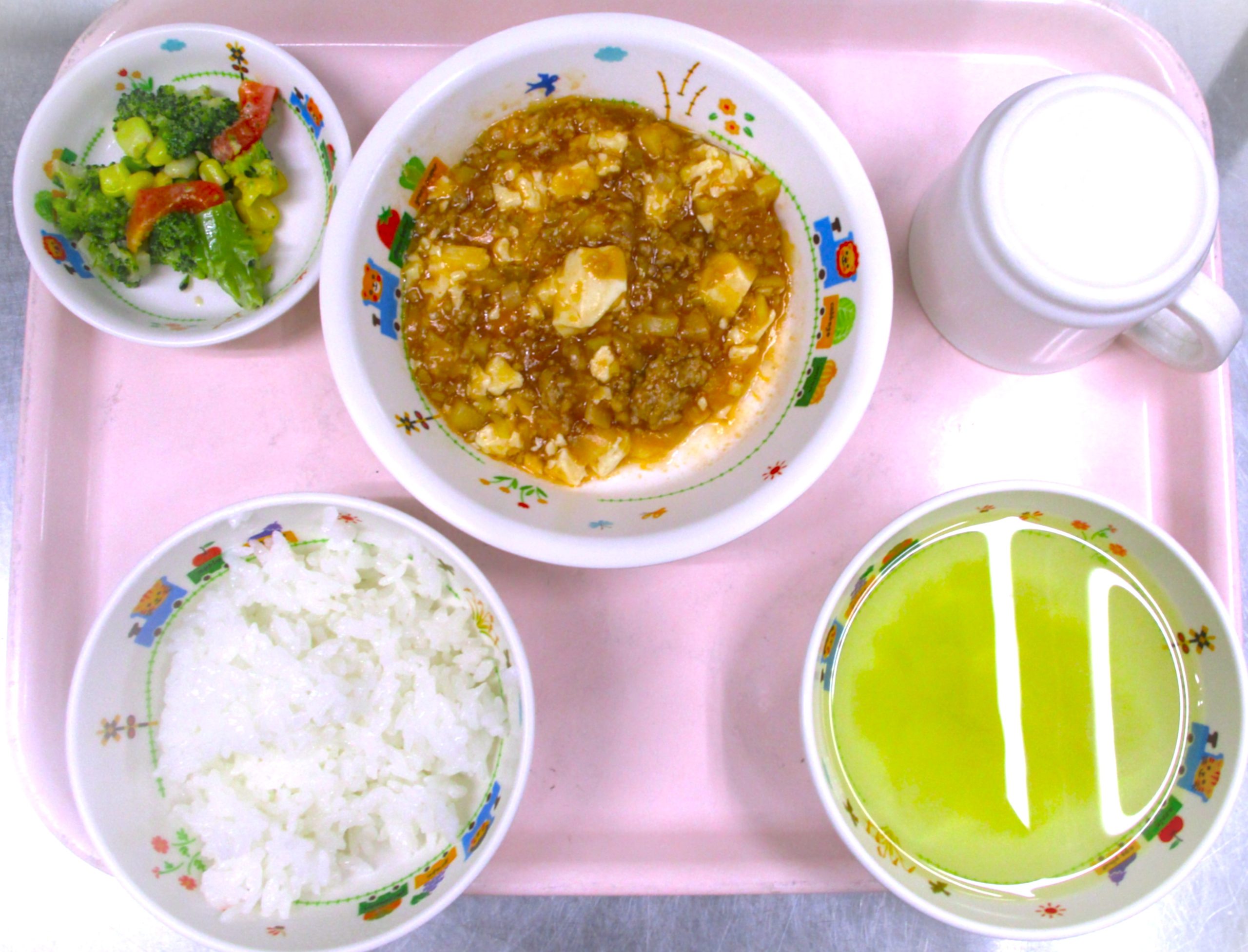 2026.02.05 🧅西湖豆腐🍴(しーほー豆腐) 🌈大宮たんぽぽ保育園 🏫今日の給食 🍚ごはん🍚 🍲スープ 西湖豆腐(しーほー豆腐) ブロッコリーの和え物 いただきます。 -