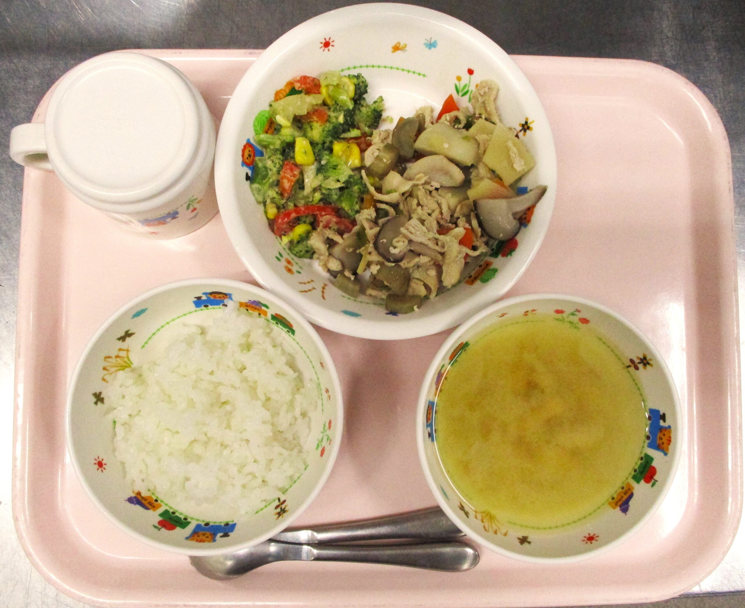 2024.01.29 保育園🌈今日の給食🍽️ 🥔筑前煮🥕 さいたま市北区 大宮たんぽぽ保育園🌈 今日の給食🍽️ 🍚ごはん 🍲みそ汁 🥕筑前煮 🥦ブロッコリーのごまマヨ和え🌽 いただきます -