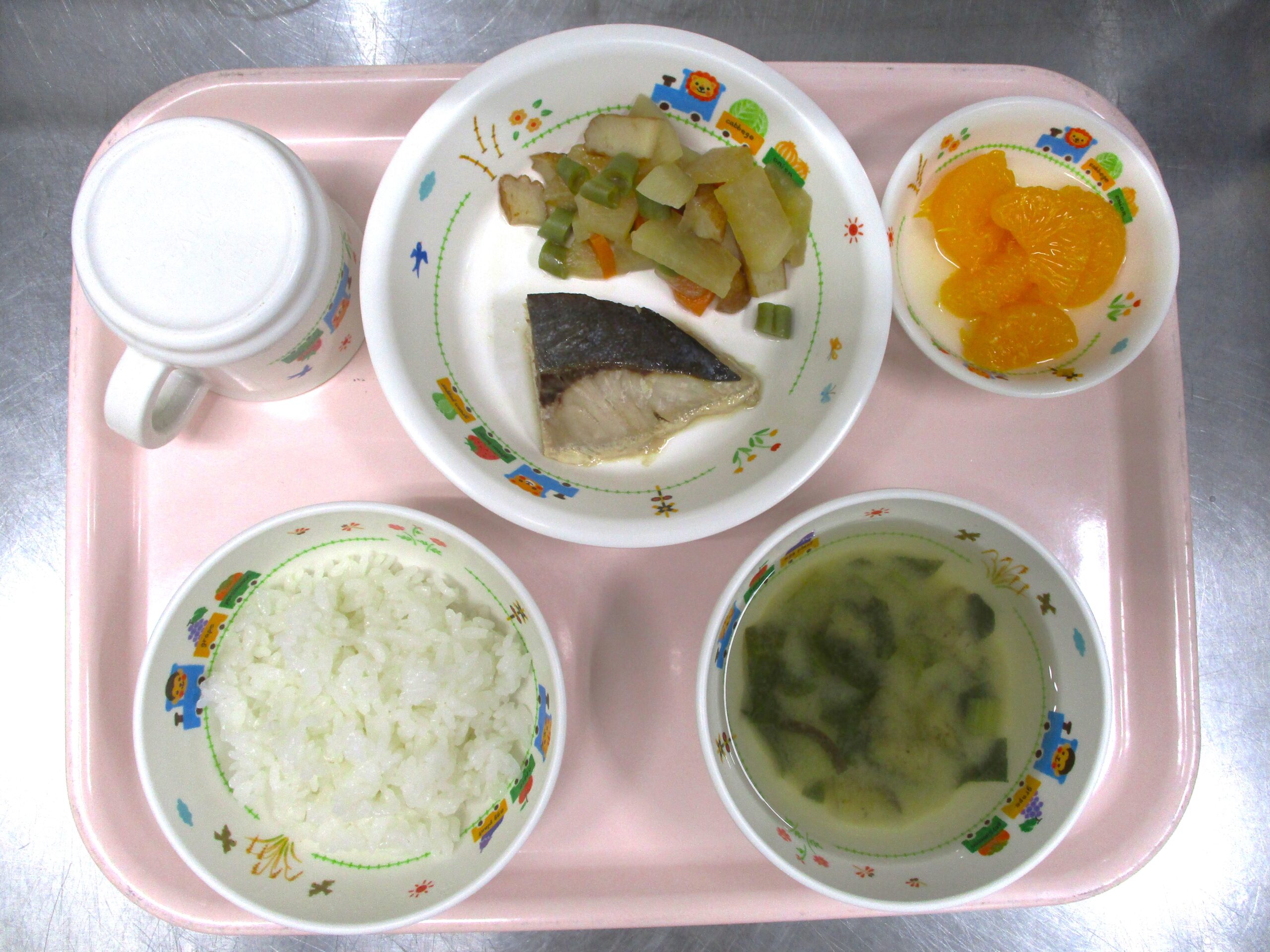 2024.02.01 今日の保育園🌈給食🍽️ブリの照り焼き🐟 大宮たんぽぽ保育園🌈 今日の給食 🍚ごはん🍲みそ汁🐟ブリの照り焼き🥕大根とさつま揚げの煮物🍊みかん缶 いただきます。 -