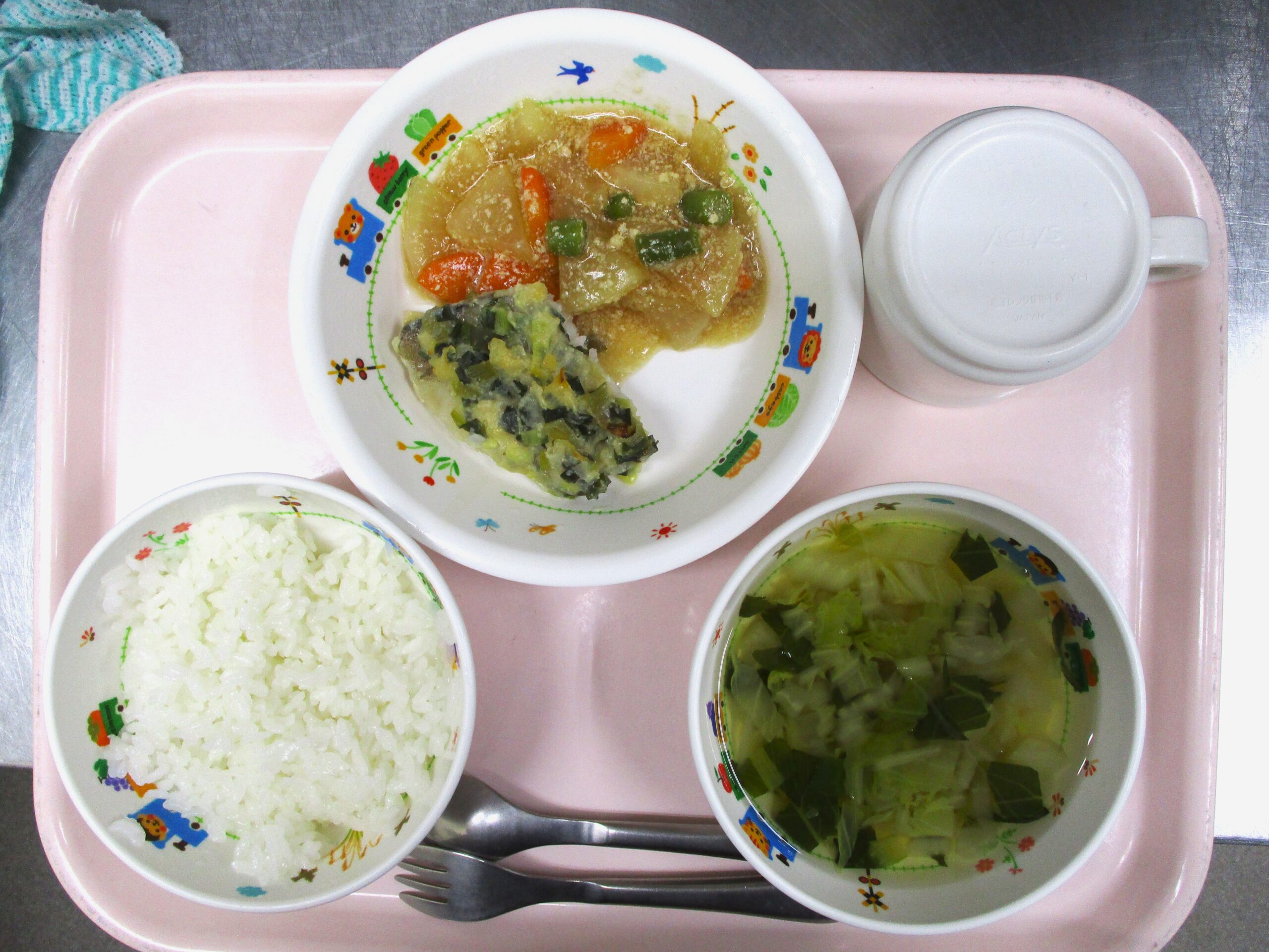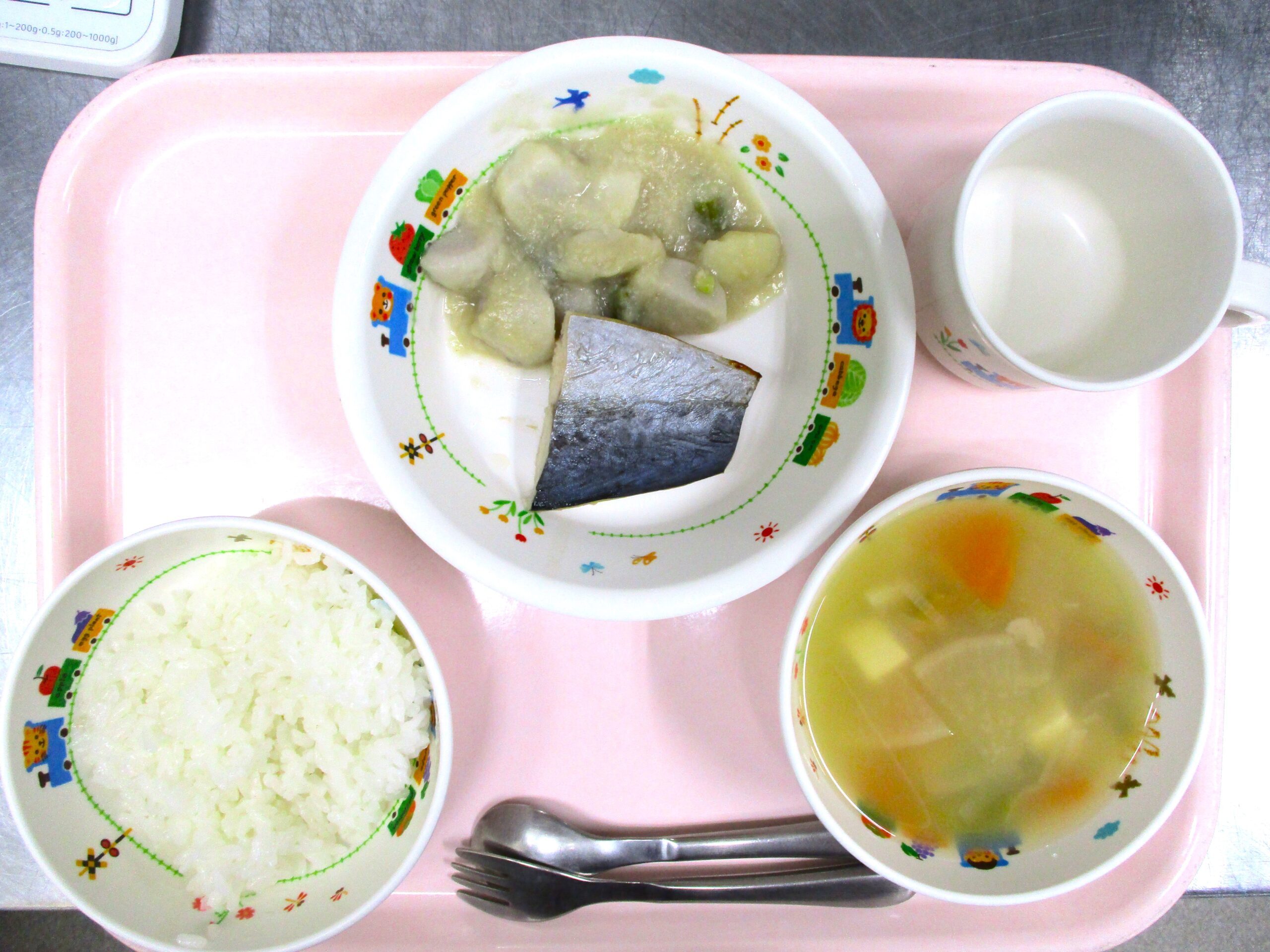 2024.01.23 今日の給食🍽️タラのネギみそ焼き 大宮たんぽぽ保育園🌈 今日の給食 🍚ごはん🍲すまし汁🐟タラのネギみそ焼き🍽️大根のそぼろ煮 いただきます。 -