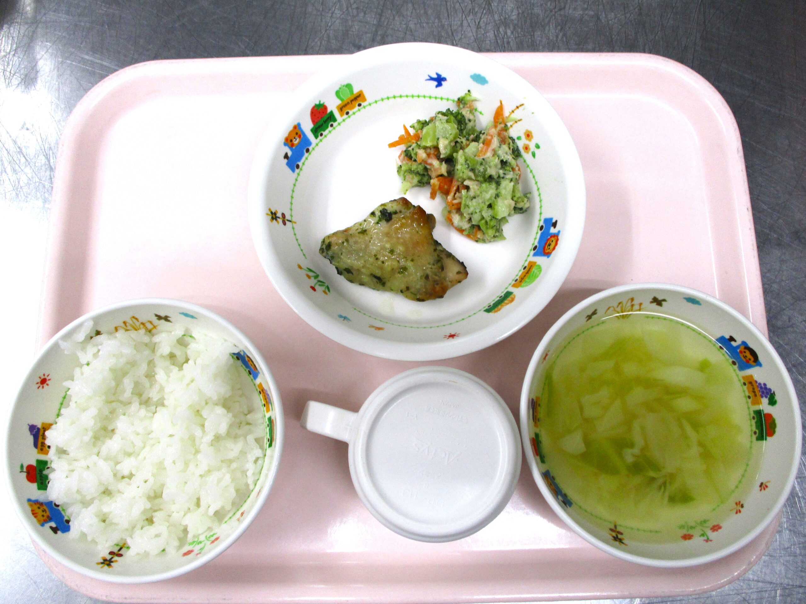 2023.12.27 🍗のり塩チキン 大宮たんぽぽ保育園🌈 今日の給食 🍚ごはん🥬キャベツスープ🍗のり塩チキン🥗ブロッコリーのサラダ いただきます。 -