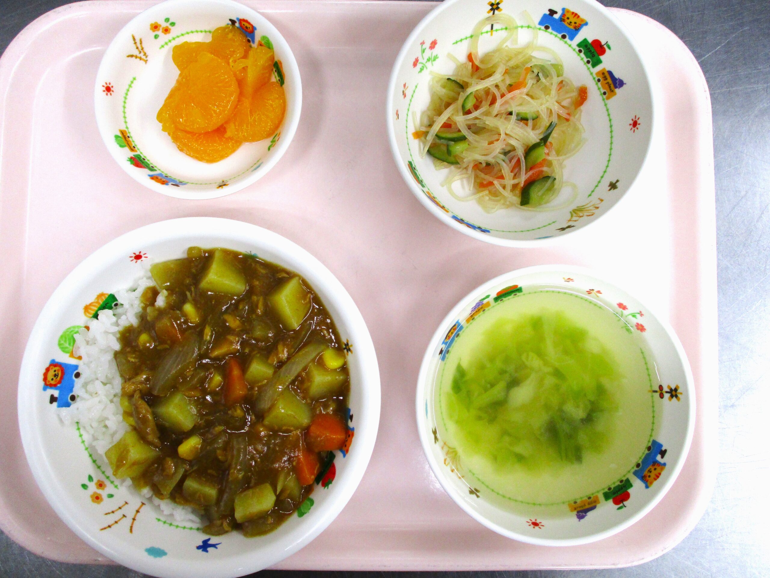 2024.01.05 🐟ツナコーンカレー🍛 大宮たんぽぽ保育園🌈 今日の給食🍽️ ツナコーンカレー🍛スープ🍲春雨のサラダ🥗ミカン缶🍊 いただきます。 -