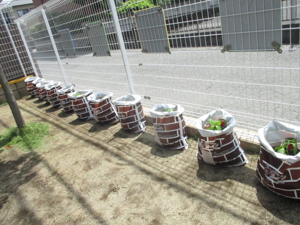 かりん組の子どもたちで、ぷちぴー(ピーマン)の苗植えを行いました。