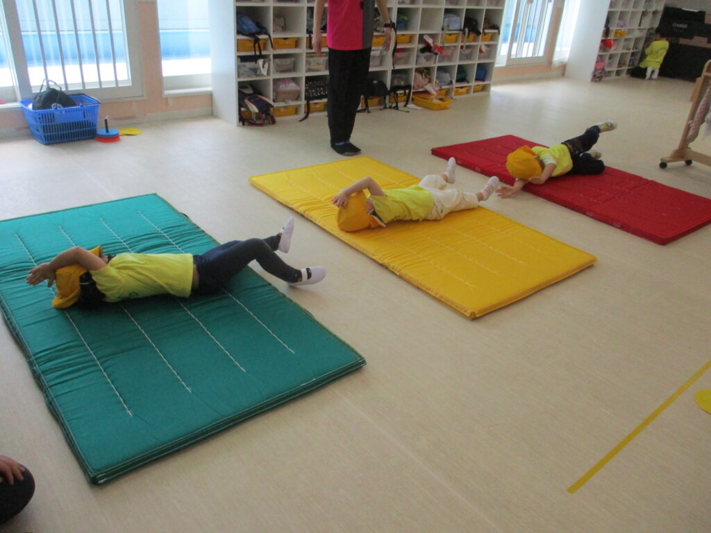 いろいろな動物の動きをしてみたり、マットを転がったり♪