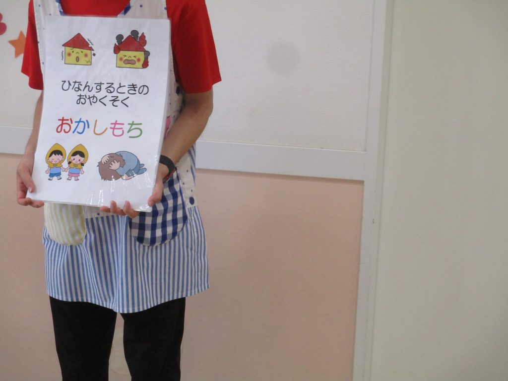 春から入園した子どもたちも、だいぶ防災頭巾を被ることに慣れてきました。