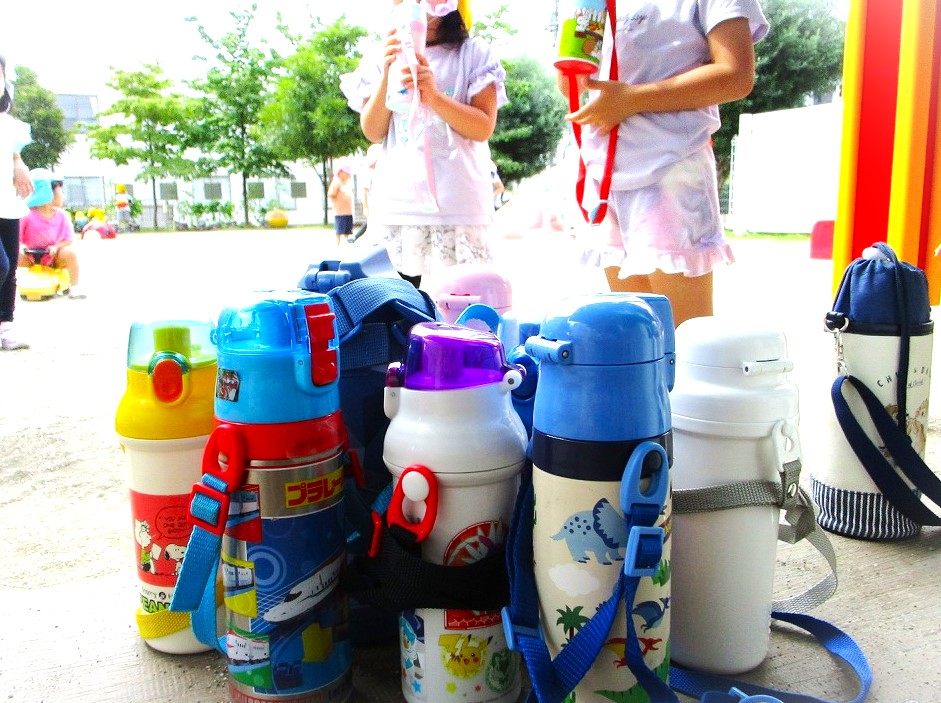 園児たち、こまめに水分補給・水筒のお水が美味しいですね♪