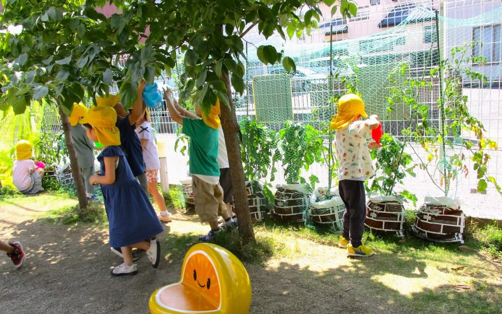 おおみやたんぽぽ保育園の園庭にある