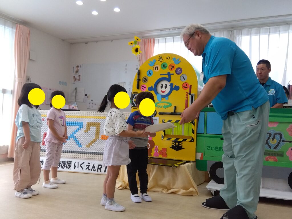 9月10日(水) 西部清掃事務所の方に園に来ていただき、子どもたちに向けて『ゴミスクール』を行っていただきました😄