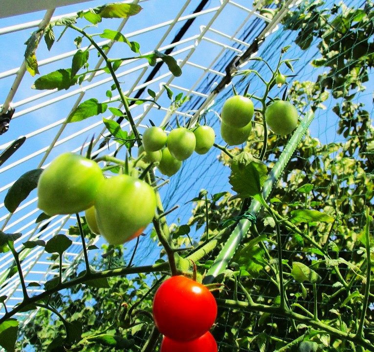 子どもたちと植えた野菜の苗が大きくなりトマト・ナスなど成長しています