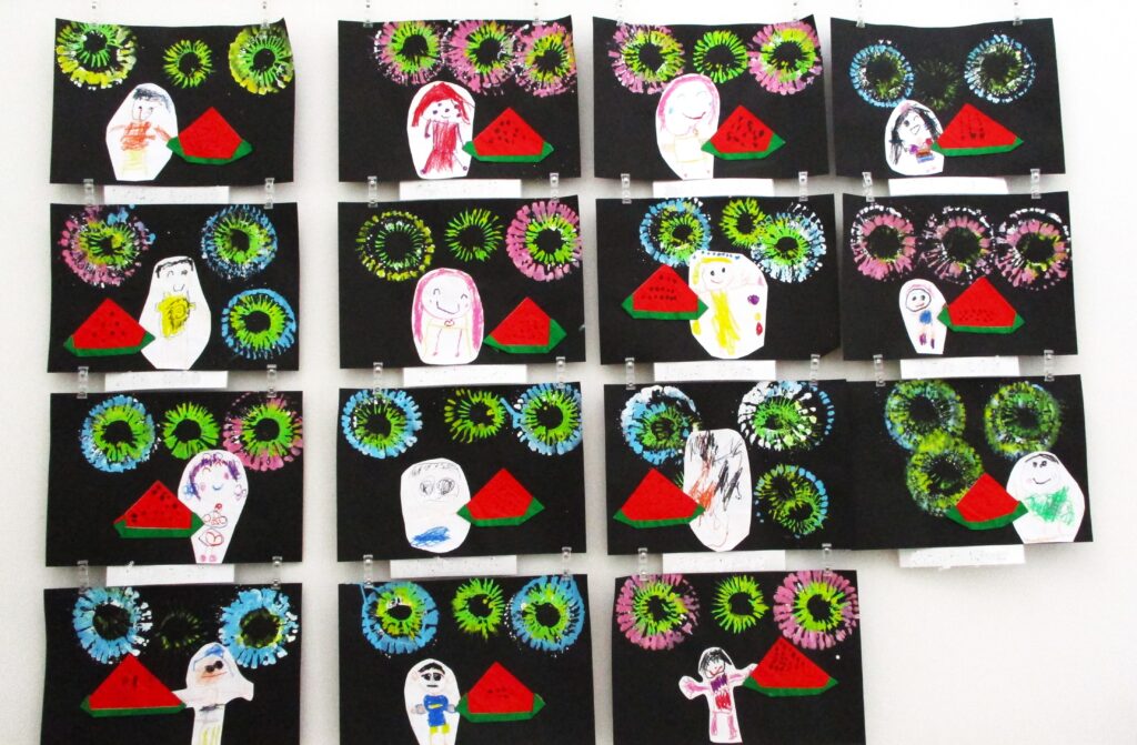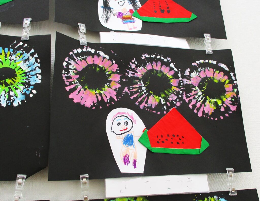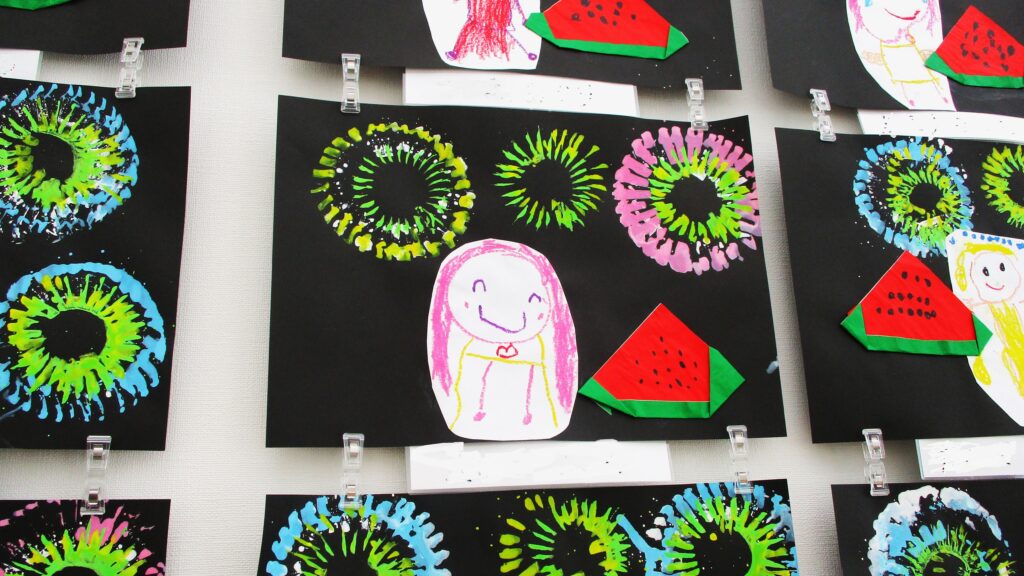 夏の作品 2023.08.10 大宮たんぽぽ保育園 園児の夏の作品 花火 と おいしそうなスイカですね。 ◀ 前へ | お知らせ 一覧 | 次へ ▶ 関連記事 2026.04.07保育園見学について【5月・6月】 2026.02.19大宮たんぽぽ保育園 お遊戯会✨ 2025.10.17お芋掘り遠足🍠 2025.10.14保育園見学について【11月】 お知らせ