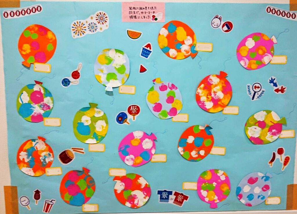 作品 2023.08.17 風船と絵具で作った 「水ヨーヨー」綺麗です ◀ 前へ | お知らせ 一覧 | 次へ ▶ 関連記事 2026.04.07保育園見学について【5月・6月】 2026.02.19大宮たんぽぽ保育園 お遊戯会✨ 2025.10.17お芋掘り遠足🍠 2025.10.14保育園見学について【11月】 お知らせ